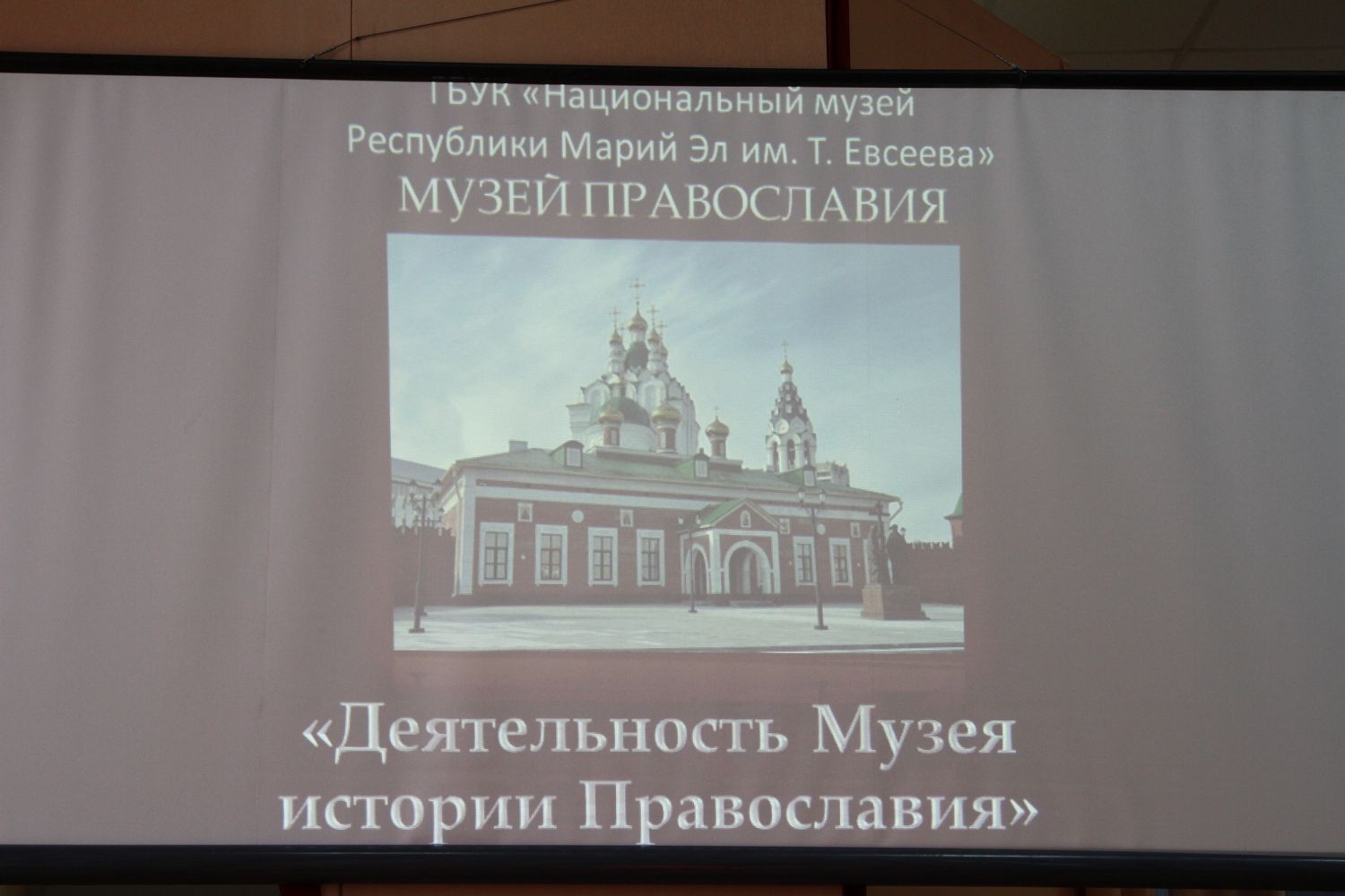 Заведующая Музеем истории православия С.С. Пасынкова рассказала о деятельности своего музея, который хотя и действует только второй год, но за это время стал отличной площадкой для проведения не только различных выставок, но и республиканских конкурсов, лекториев, других мероприятий и проектов. Светлана Сергеевна пригласила участников чтений посетить музей истории Православия и познакомится ближе с ее постоянными экспонатами и выставками, которые представлены на данный момент.