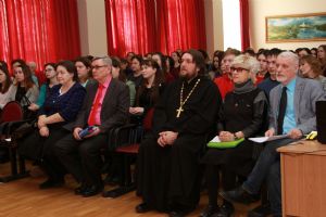 После торжественного открытия прозвучали доклады, подготовленные в рамках VIII Городских чтений «Православная книга в жизни человека». Интересно и актуально в свете приближающегося столетия со дня мученической кончины святой преподобномученицы Елисаветы прозвучало выступление доцента кафедры МарГУ, кандидата исторических наук, директора Епархиального образовательного центра О.Г. Левенштейна «Великая княгиня Елисавета Федоровна».