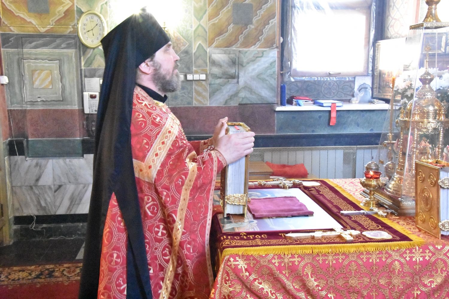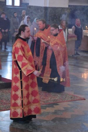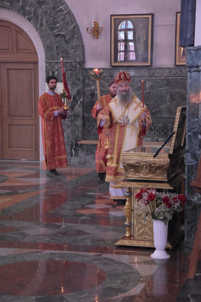 Богослужение началось торжественной встречей архипастыря. За богослужением читались отрывки из книги Деяний Апостолов (3 глава) об исцелении хромого и проповеди апостола Петра и из Евангелия от Иоанна (3 глава) о свидетельстве Иоанна Предтечи о Господе Иисусе.