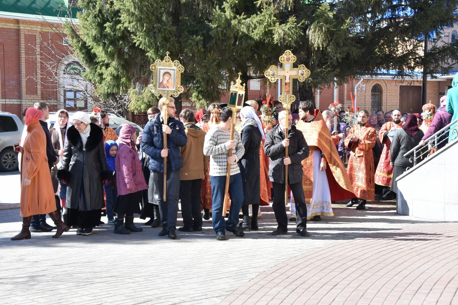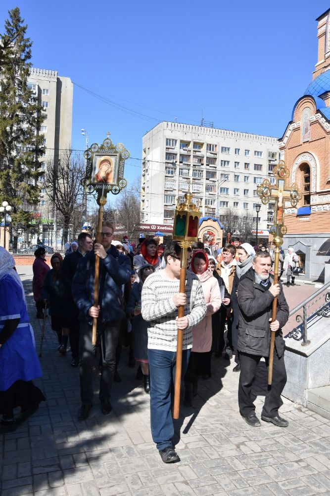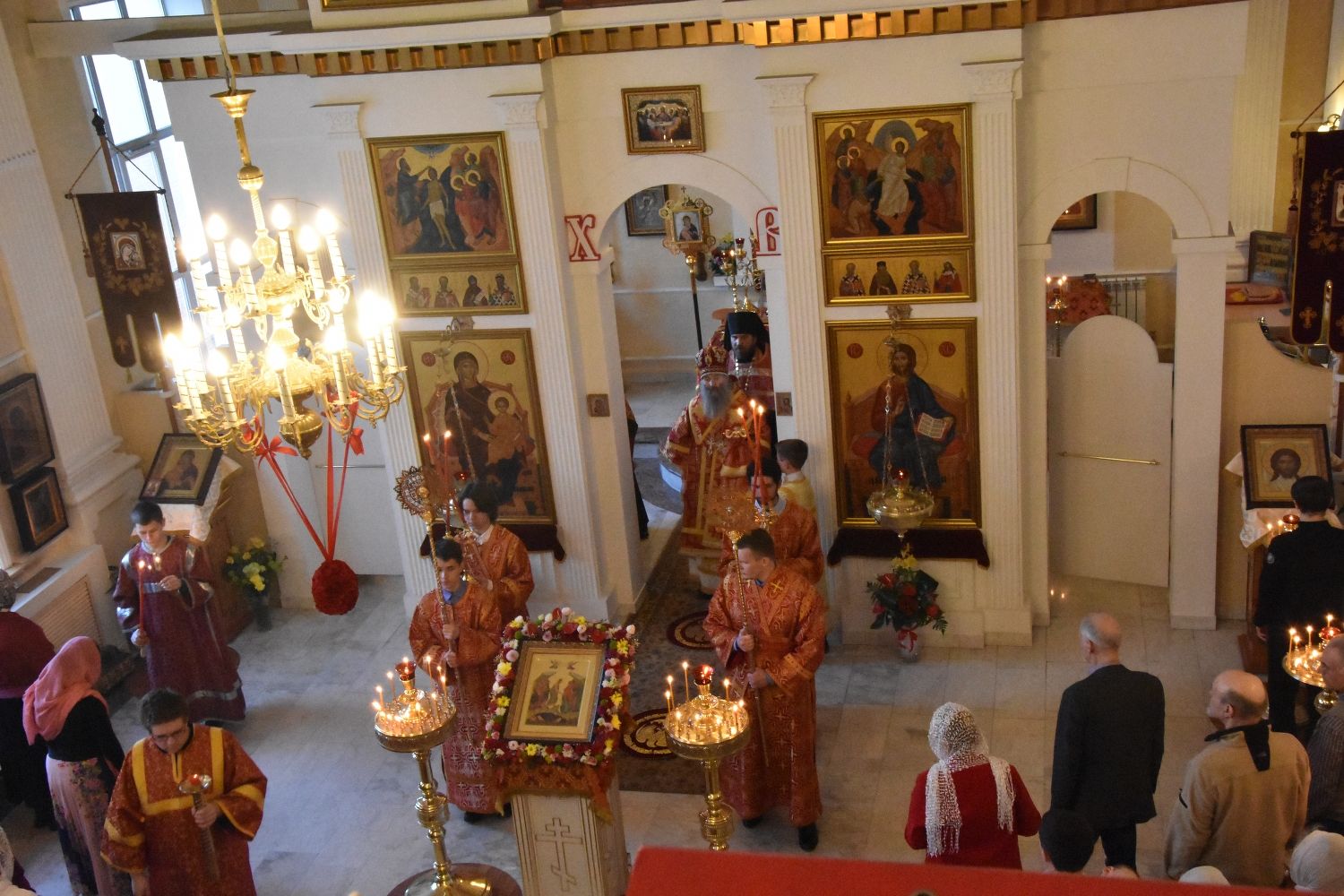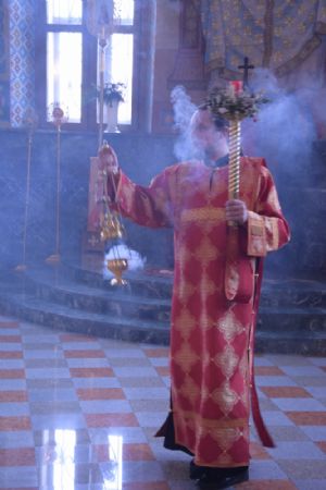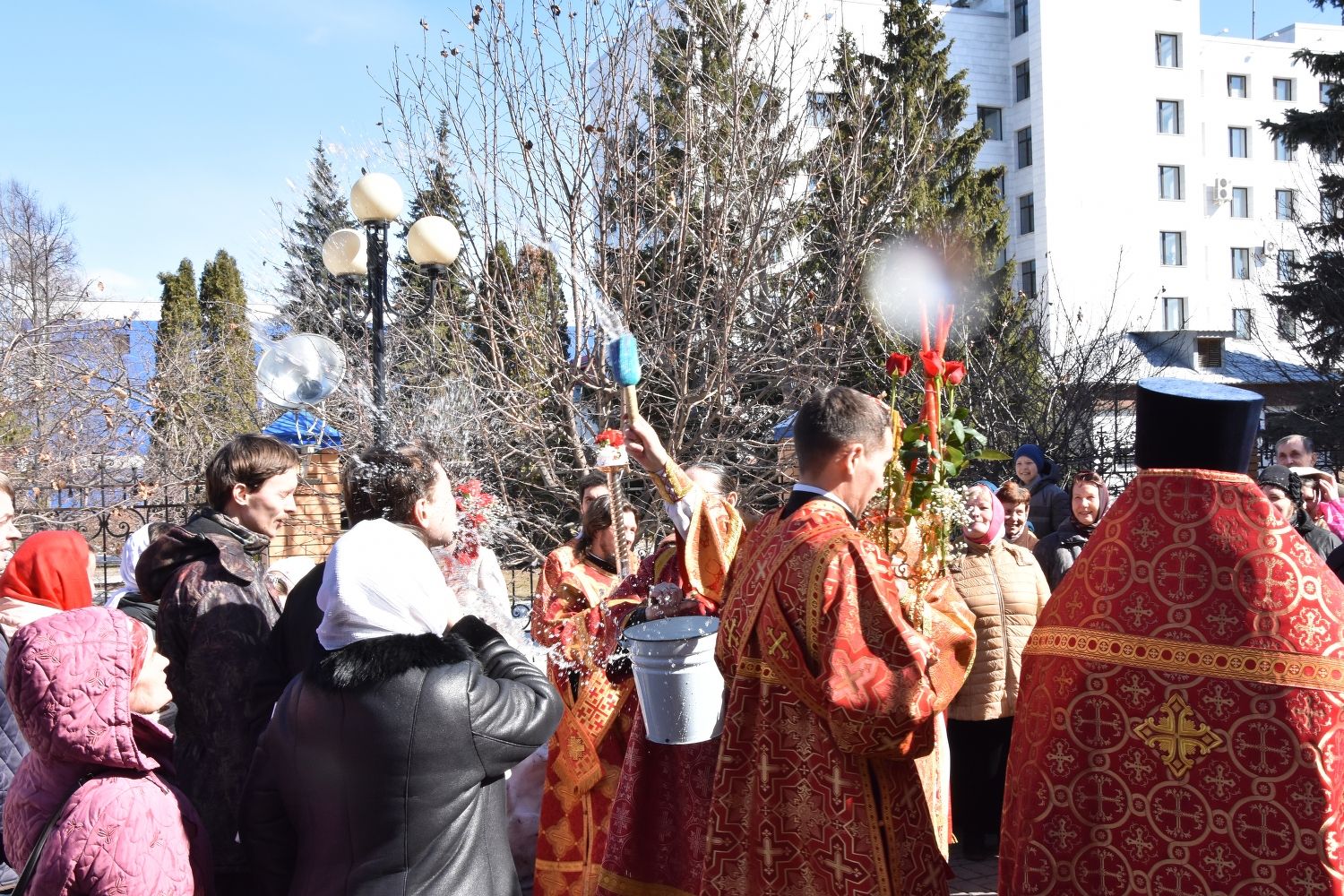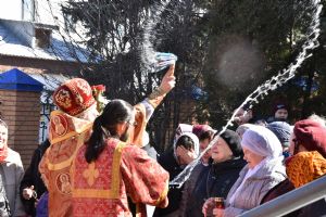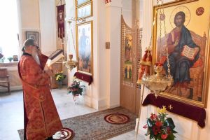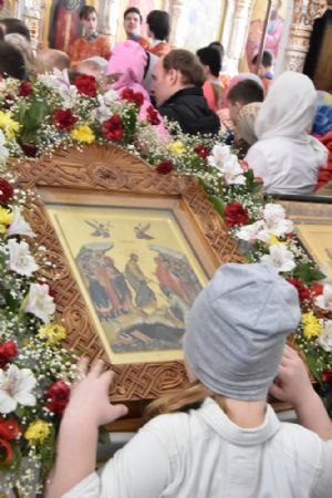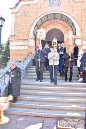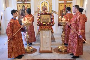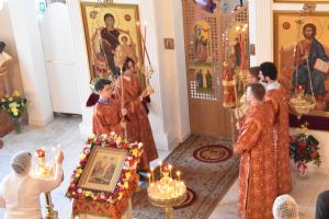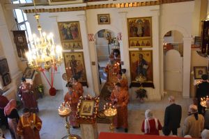 За Литургией песнопения исполнял хор под управлением регента Александры Ивановой. После Божественной литургии прошел крестный ход вокруг храма с чтением Евангелия и кроплением святой водой.