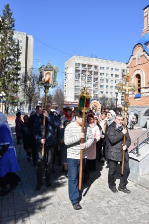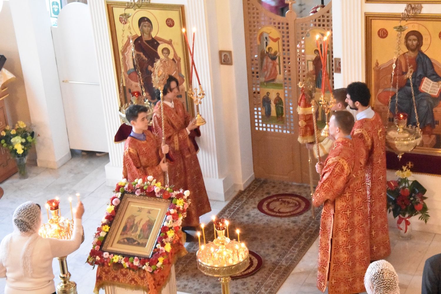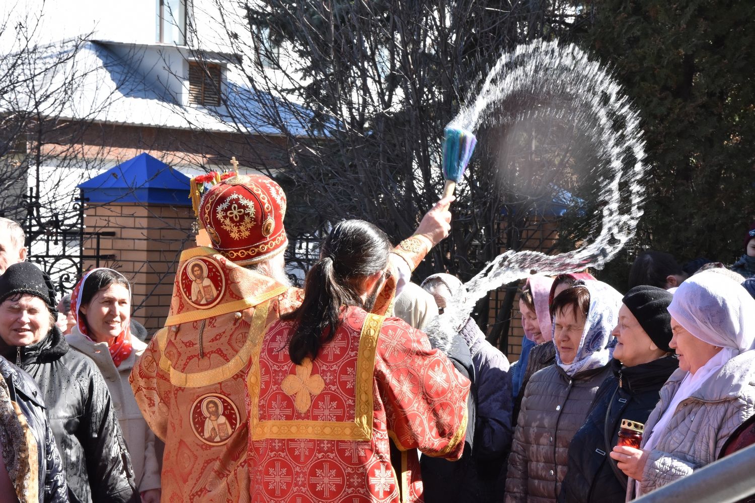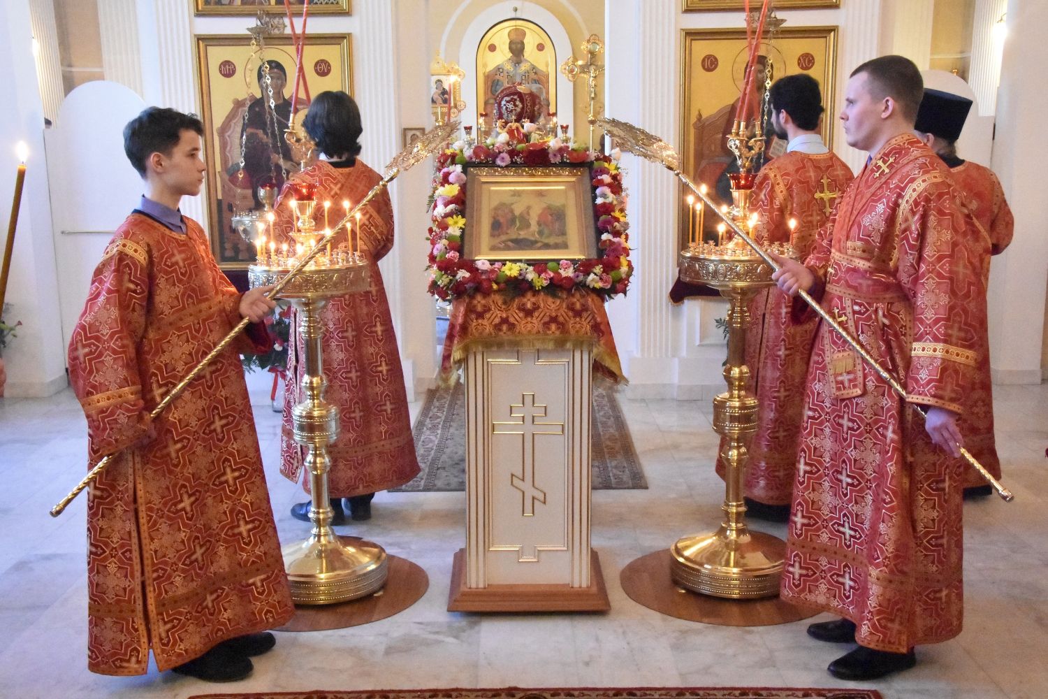 За Литургией песнопения исполнял хор под управлением регента Александры Ивановой. После Божественной литургии прошел крестный ход вокруг храма с чтением Евангелия и кроплением святой водой.