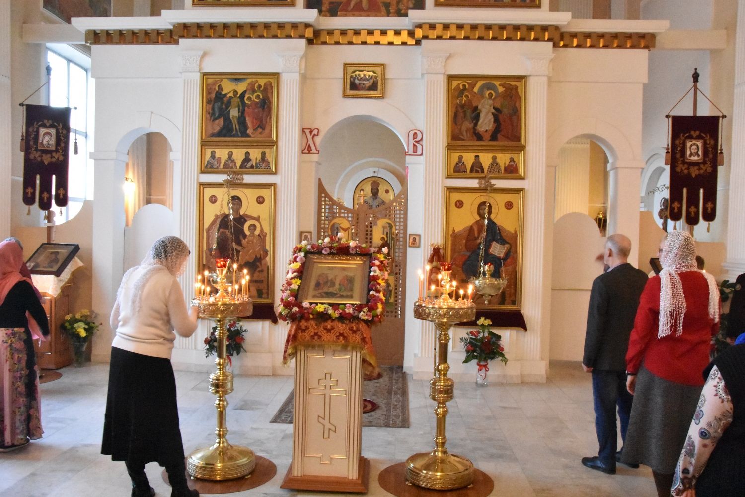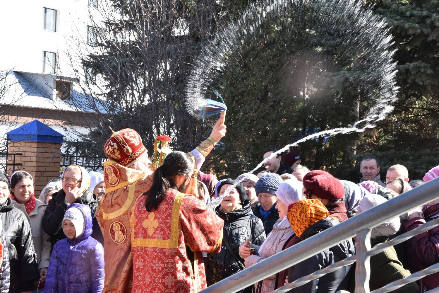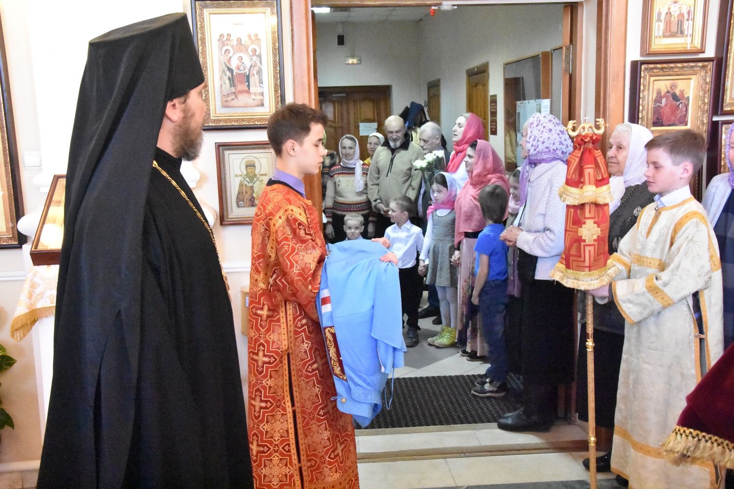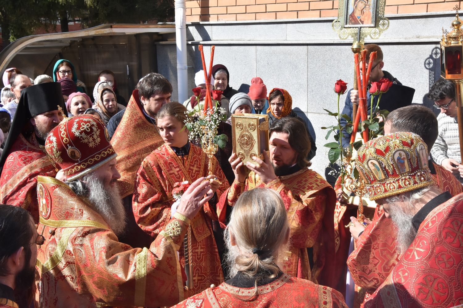 За Литургией песнопения исполнял хор под управлением регента Александры Ивановой. После Божественной литургии прошел крестный ход вокруг храма с чтением Евангелия и кроплением святой водой.