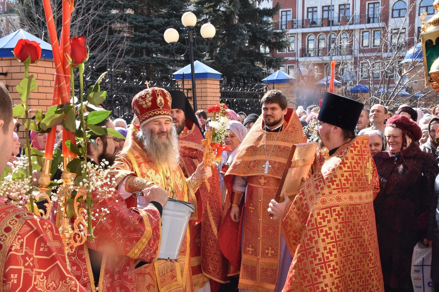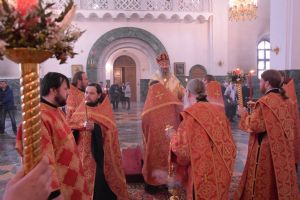 15 апреля митрополит Йошкар-Олинский и Марийский Иоанн возглавил Божественную литургию в Воскресенском соборе города Йошкар-Олы. Владыке сослужили секретарь Епархиального управления иеромонах Серафим (Пасанаев), настоятель храма иерей Алексей Кирюшкин, клирик храма Рождества Пресвятой Богородицы села Семеновка протодиакон Михаил Козловский и клирик храма диакон Алексей Кузнецов.