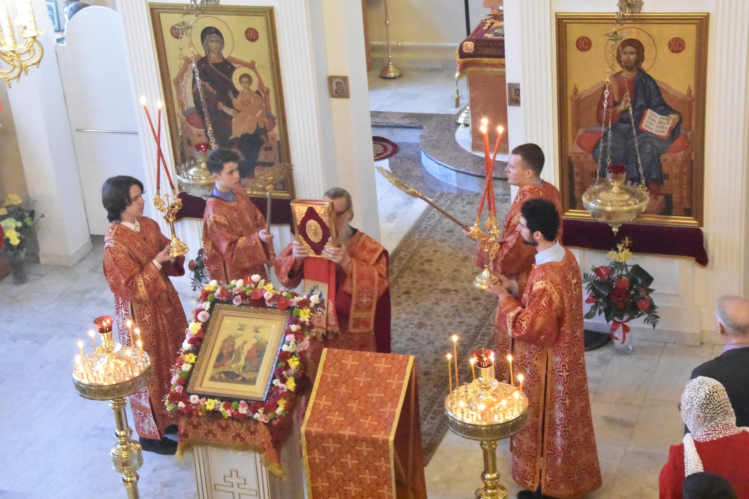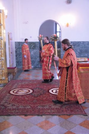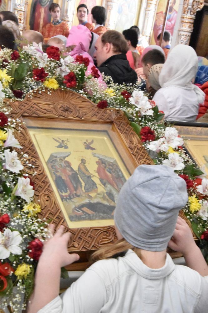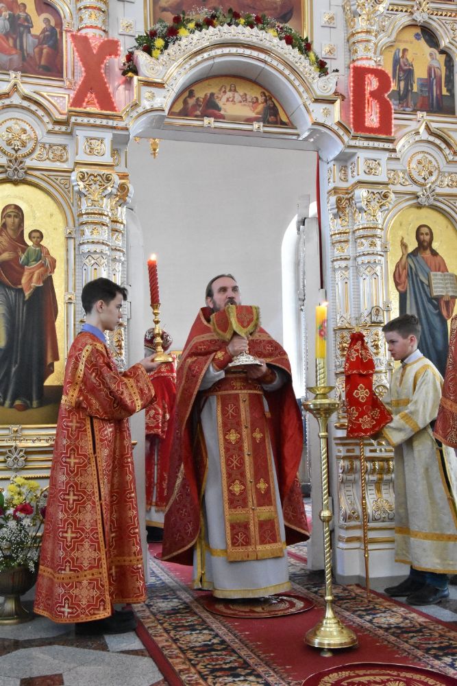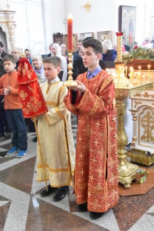 За богослужением читался отрывок из Евангелия от Матфея (28 глава) о явлении Господа Иисуса Христа в Галилее и отправлении апостолов на проповедь. Песнопения исполнял хор под управлением регента Аллы Симаковой.
