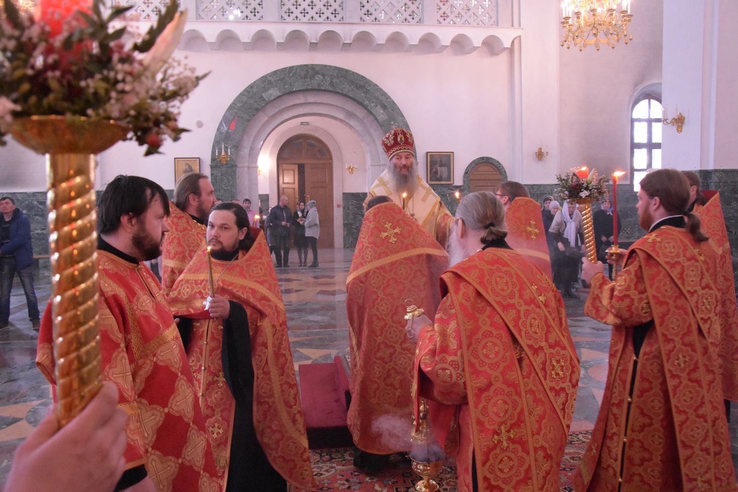 14 апреля в субботу Светлой Седмицы митрополит Йошкар-Олинский и Марийский Иоанн возглавил Божественную литургию в храме Успения Пресвятой Богородицы города Йошкар-Олы.