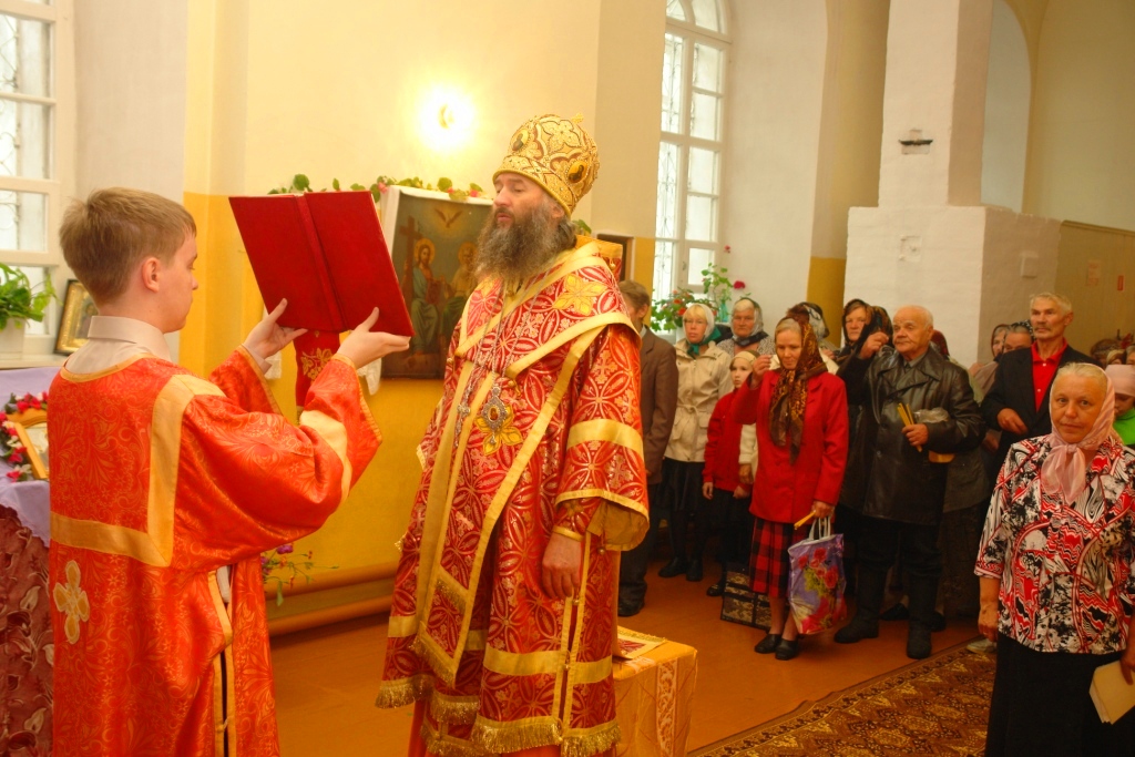 Сослужили архиепископу настоятель храма священник Виктор Немцев и протоиерей Михаил Нехорошков. После Божественной литургии традиционно совершен крестный ход на местное озеро, где Владыка Иоанн совершил водосвятный молебен и окропил всех присутствующих святой водой.