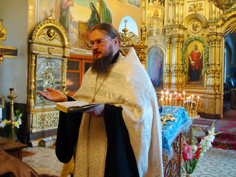 Сразу после молебна была организована экскурсия по храму. Отец Александр рассказал об истории церкви Рождества Пресвятой Богородицы и интересные моменты из жития святых.