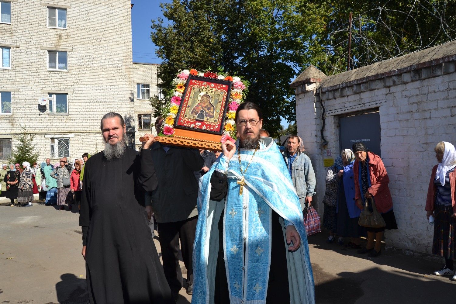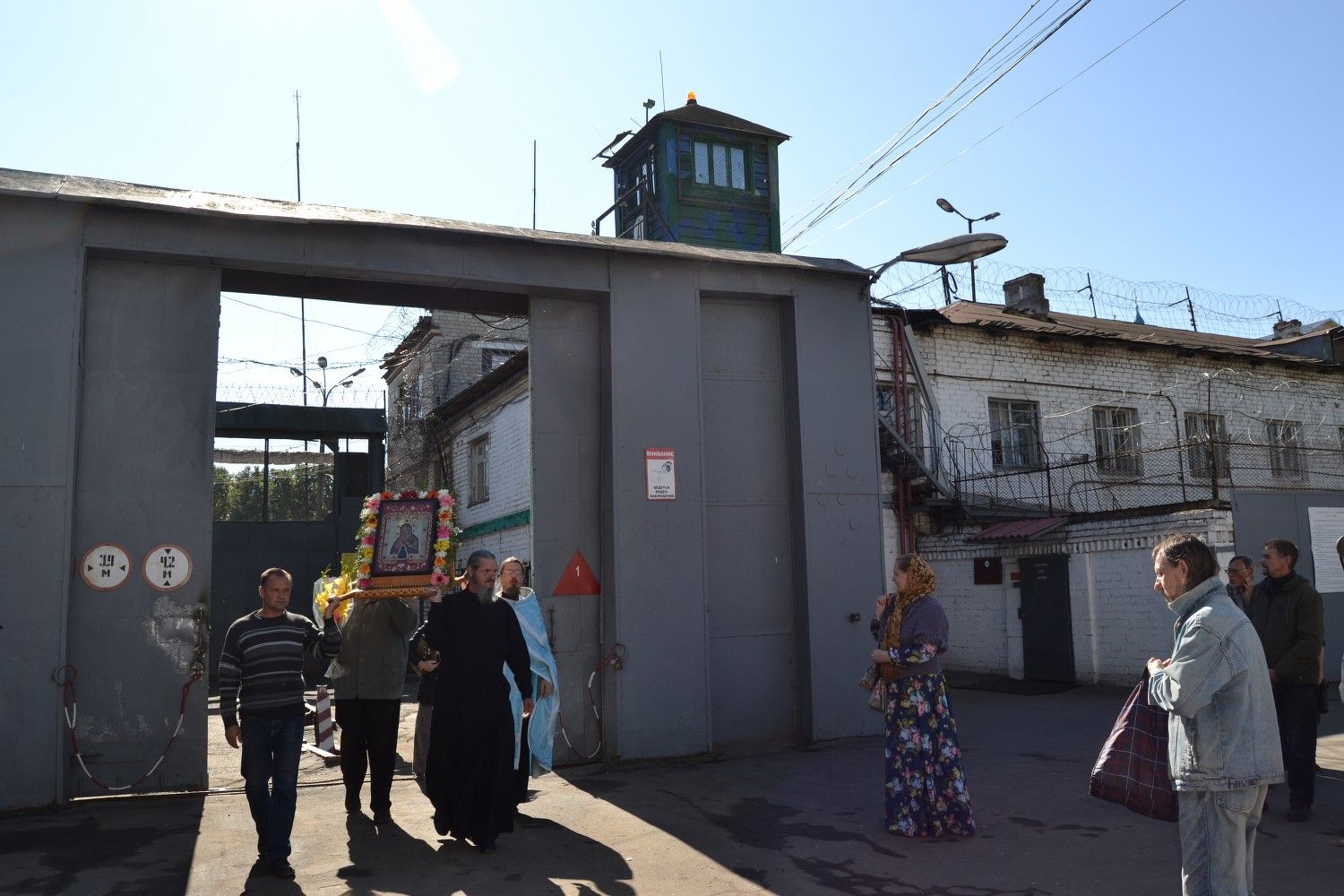 В Медведево чудотворный образ внесли на территорию Исправительной коллонии. Здесь после краткой молитвы и слов назидания протоиерея Алексия Михайлова заключенные приложились к иконе.