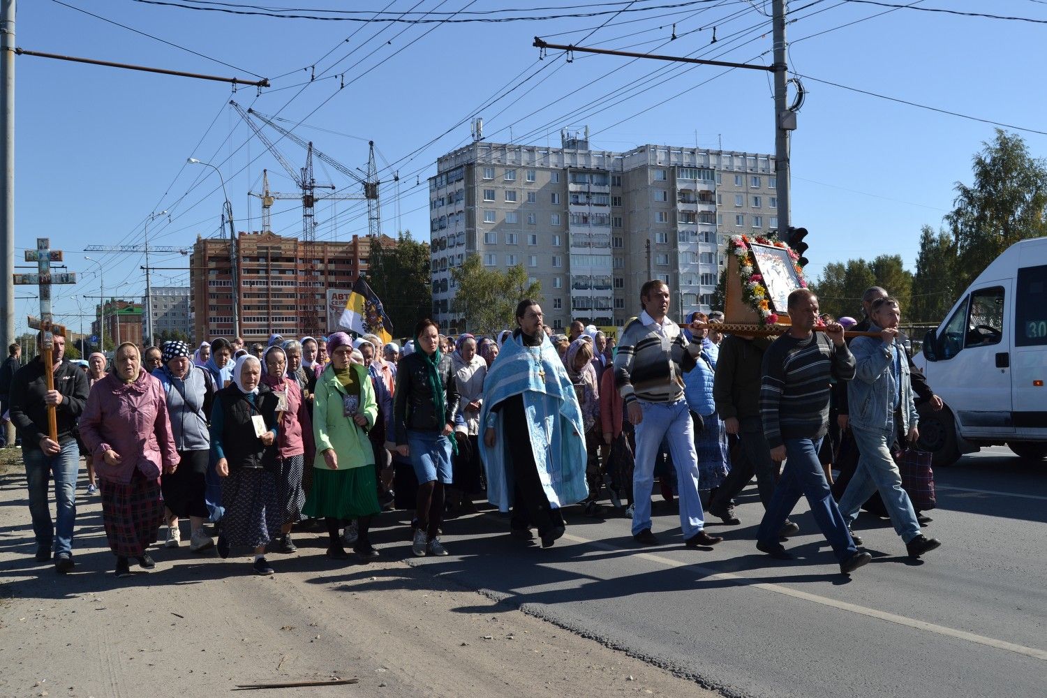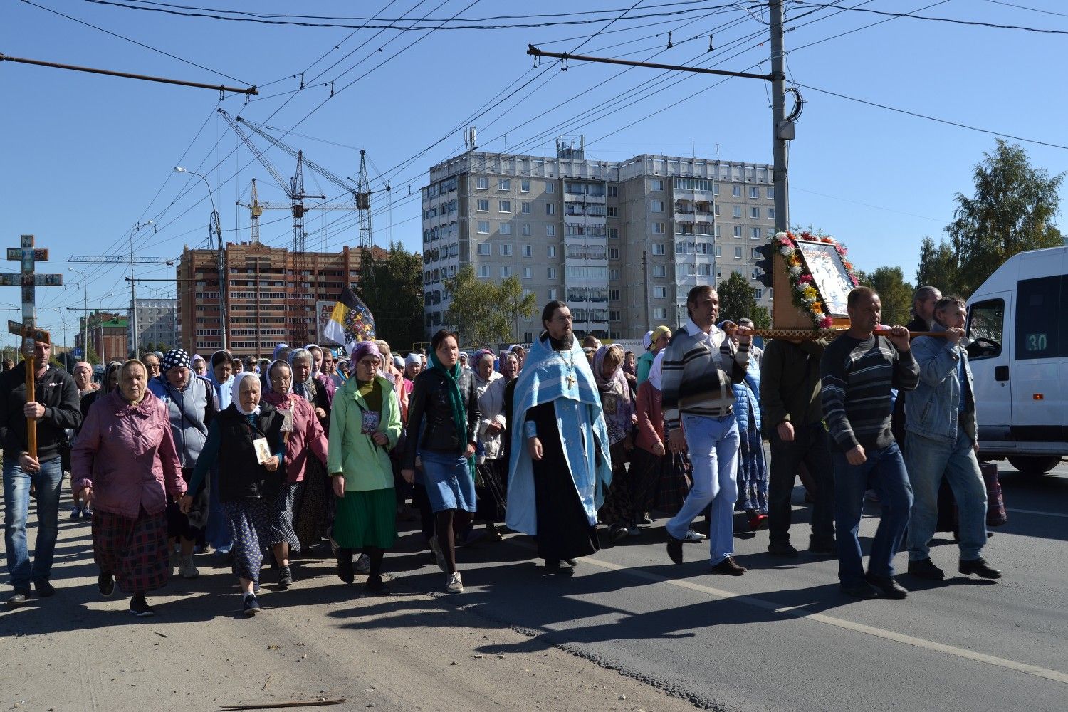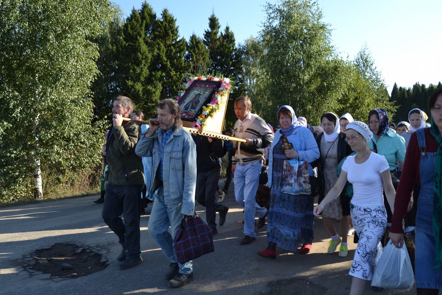 Один из самых длинных маршрутов крестного хода с образом Пресвятой Богородицы "Мироносицкая" приходится на четвертый день. Крестоходцы проходят с чудотворным образом около пятнадцати километров между храмом п.Медведево и храмом Казанской иконы Пресвятой Богородицы с.Нурма.