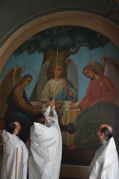 После освящения приделов митрополит Иоанн с сослужащим духовенством совершил Божественную литургию в приделе святителя Николая.