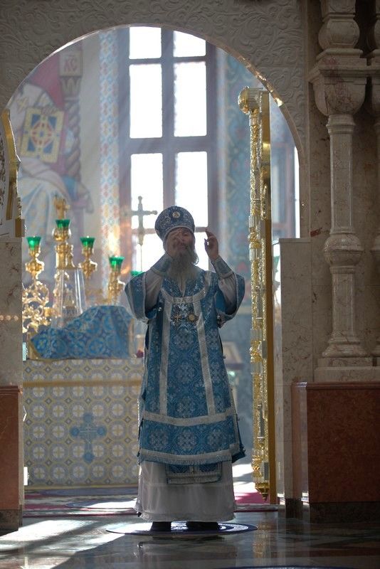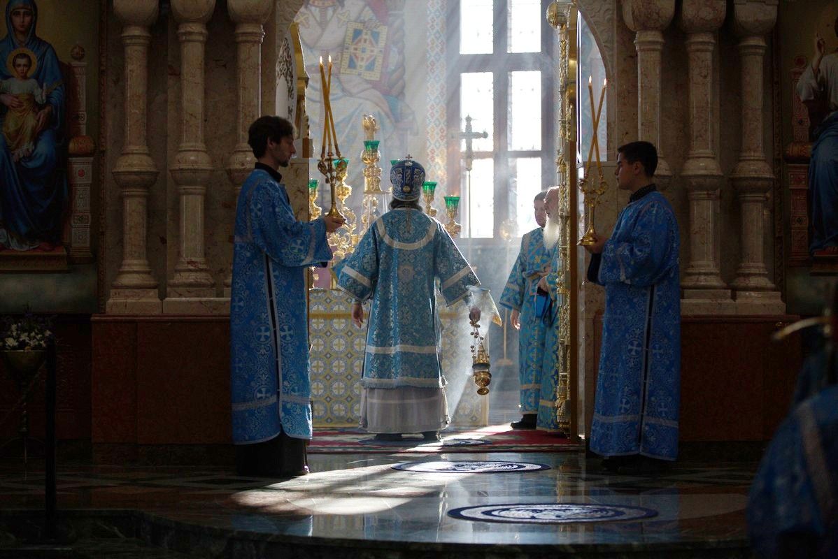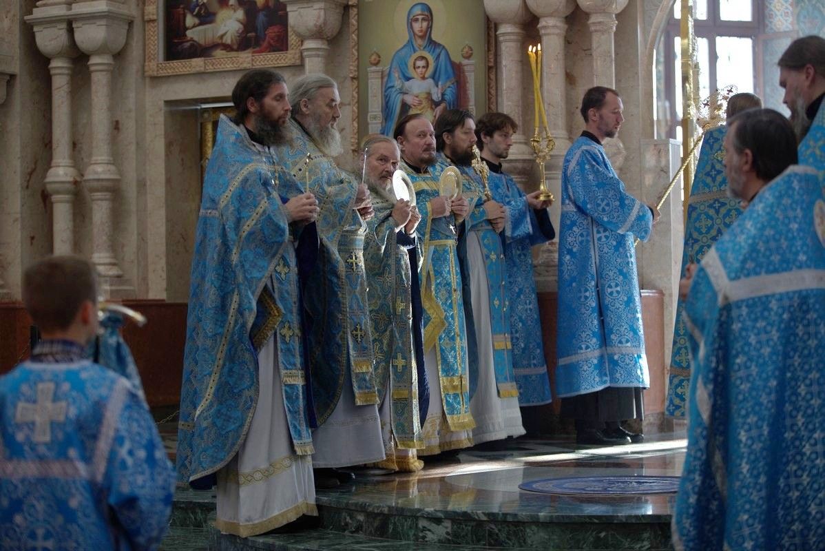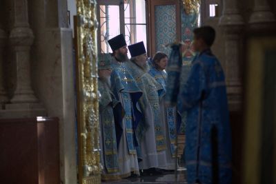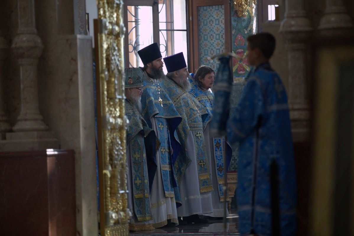 Сослужили Владыке: ключарь собора протоиерей Сергий Поглазов, благочинные церковных округов, руководители епархиальных отделов и многочисленные клирики епархии.