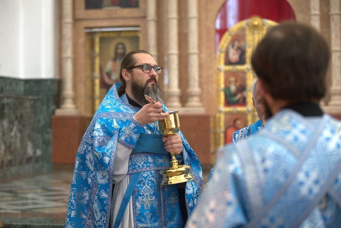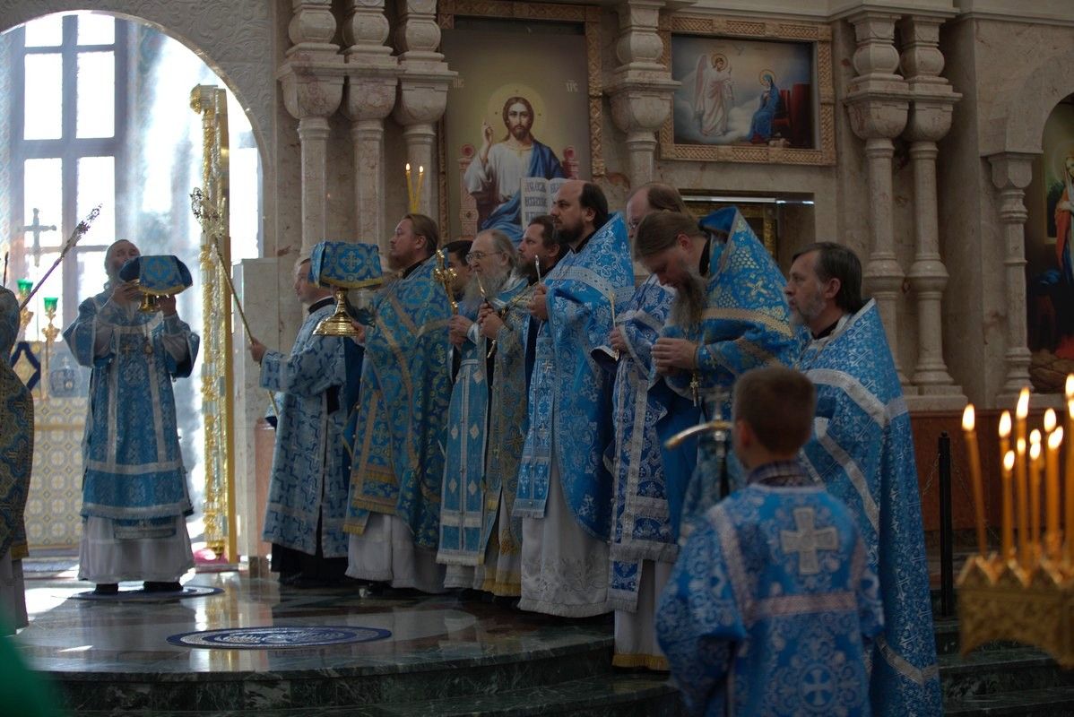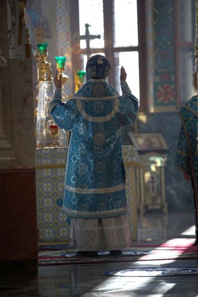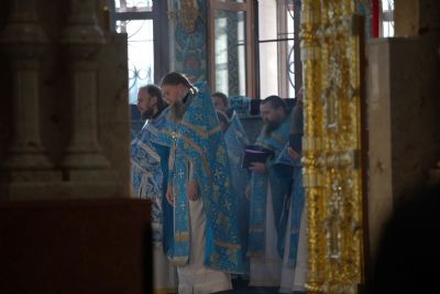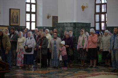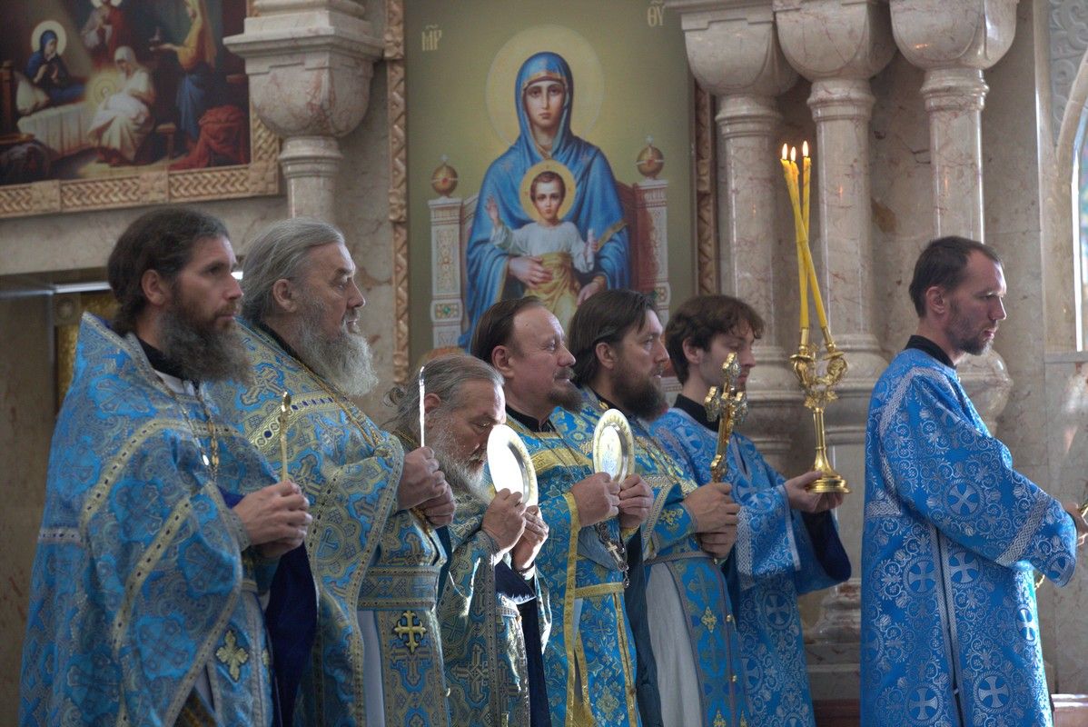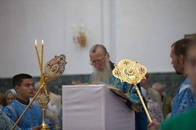 Сослужили Владыке: ключарь собора протоиерей Сергий Поглазов, благочинные церковных округов, руководители епархиальных отделов и многочисленные клирики епархии.