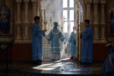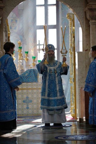 Накануне в Благовещенском соборе митрополит Иоанн в сослужении клириков епархии совершил Всенощное бдение.