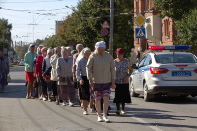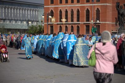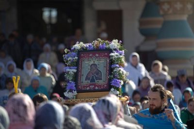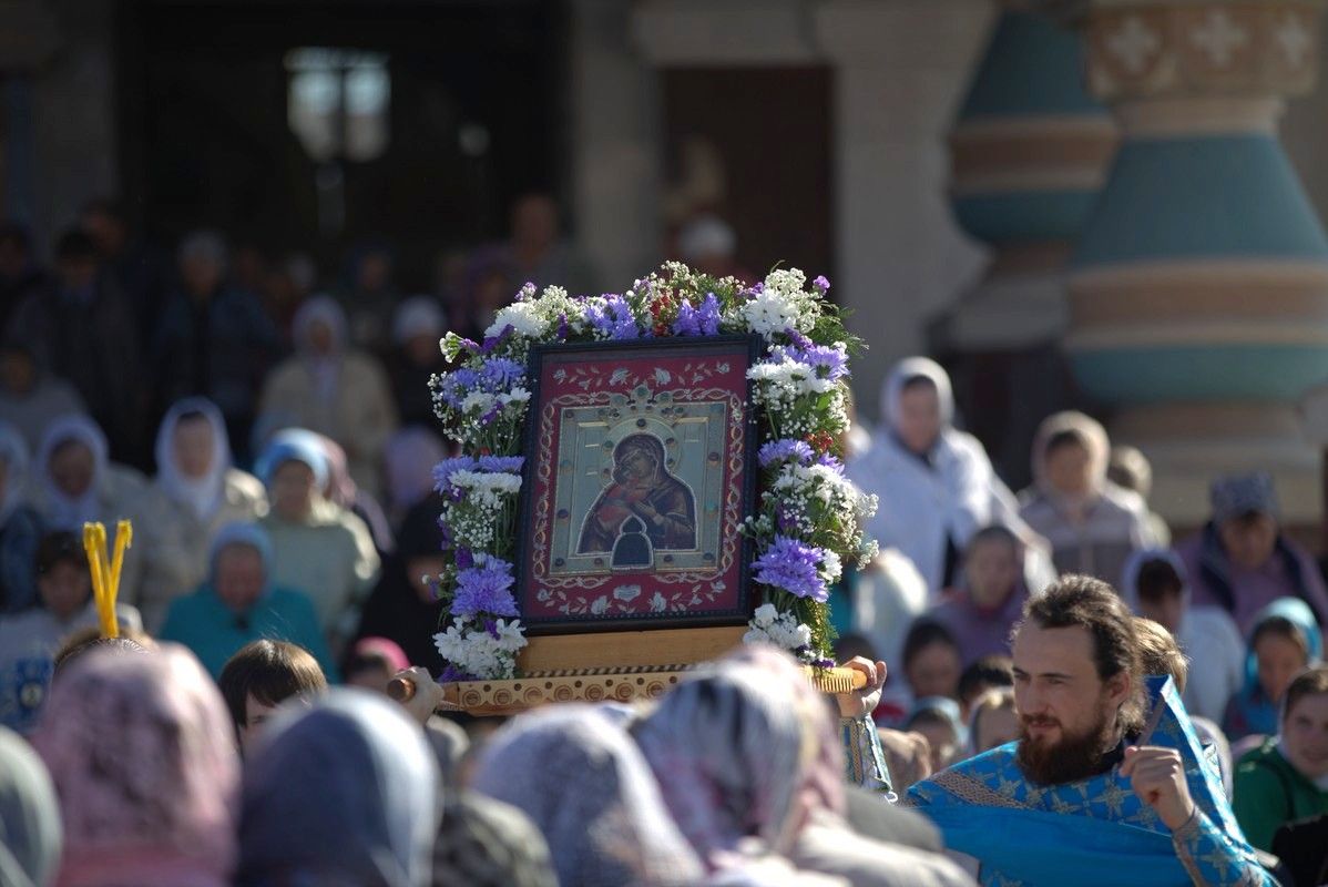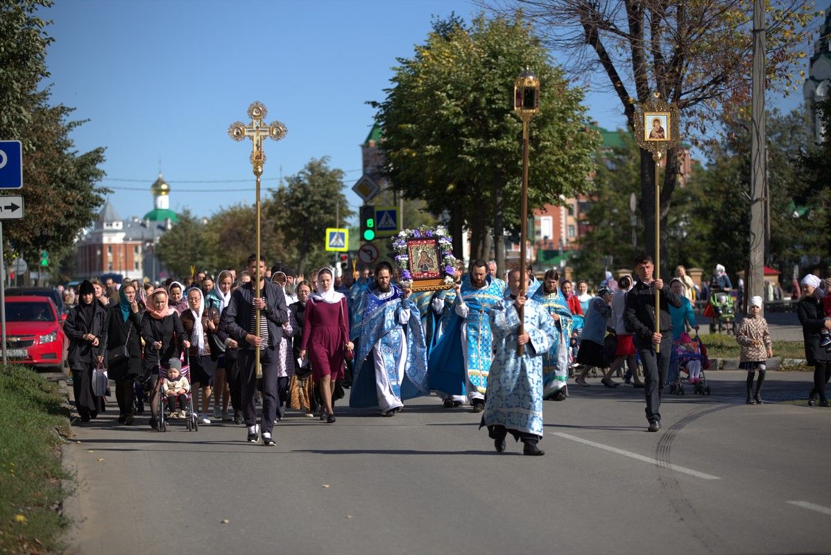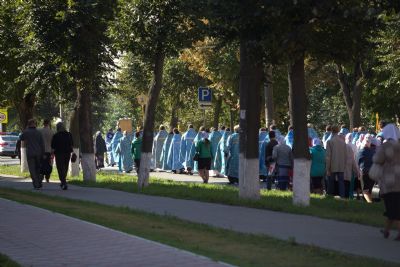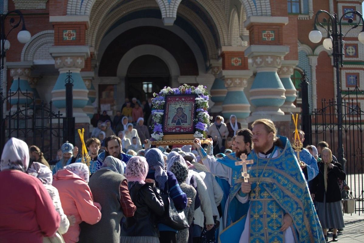 После Божественной литургии сонм священнослужителей во главе с Владыкой отправился крестным ходом с Мироносицкой иконой Пресвятой Богородицы в Успенский храм. Вместе с ними крестным ходом шли многочисленные верующие из Йошкар-Олы и районов республики.