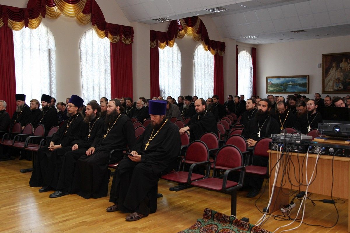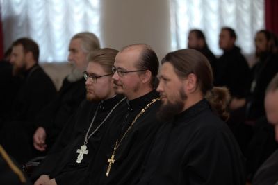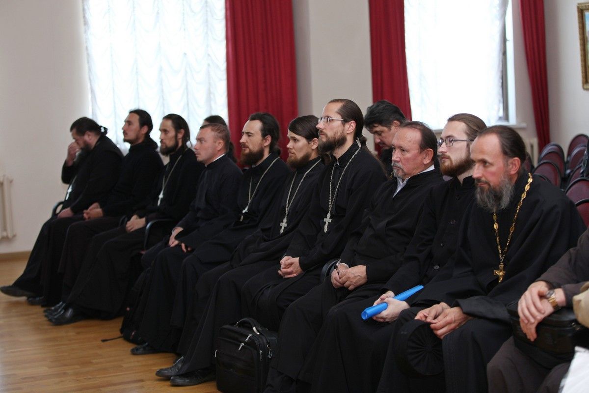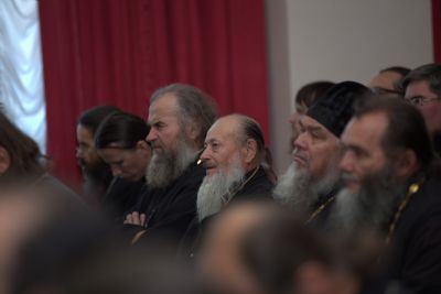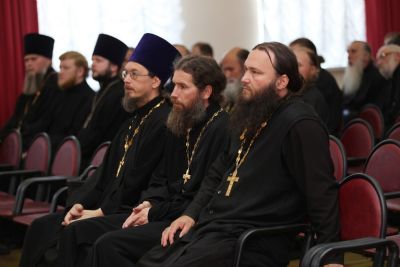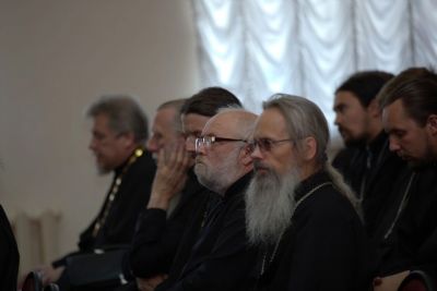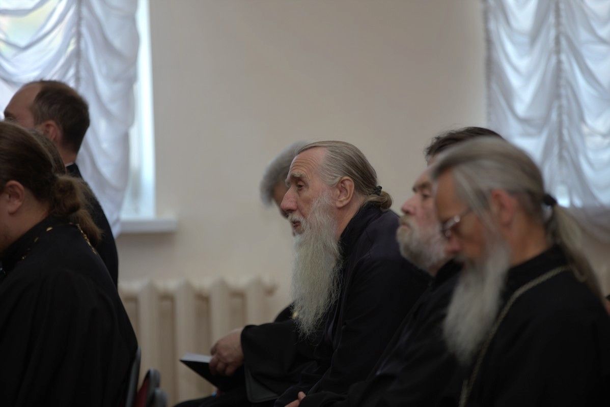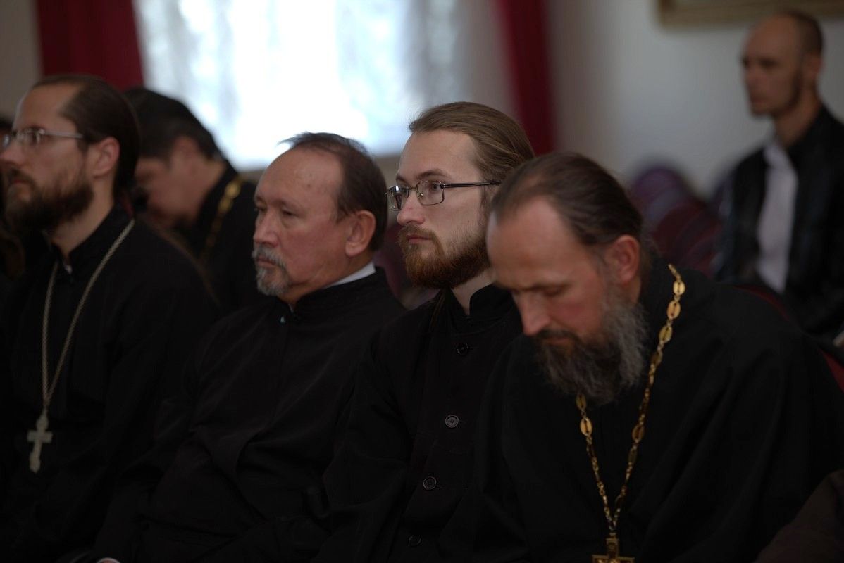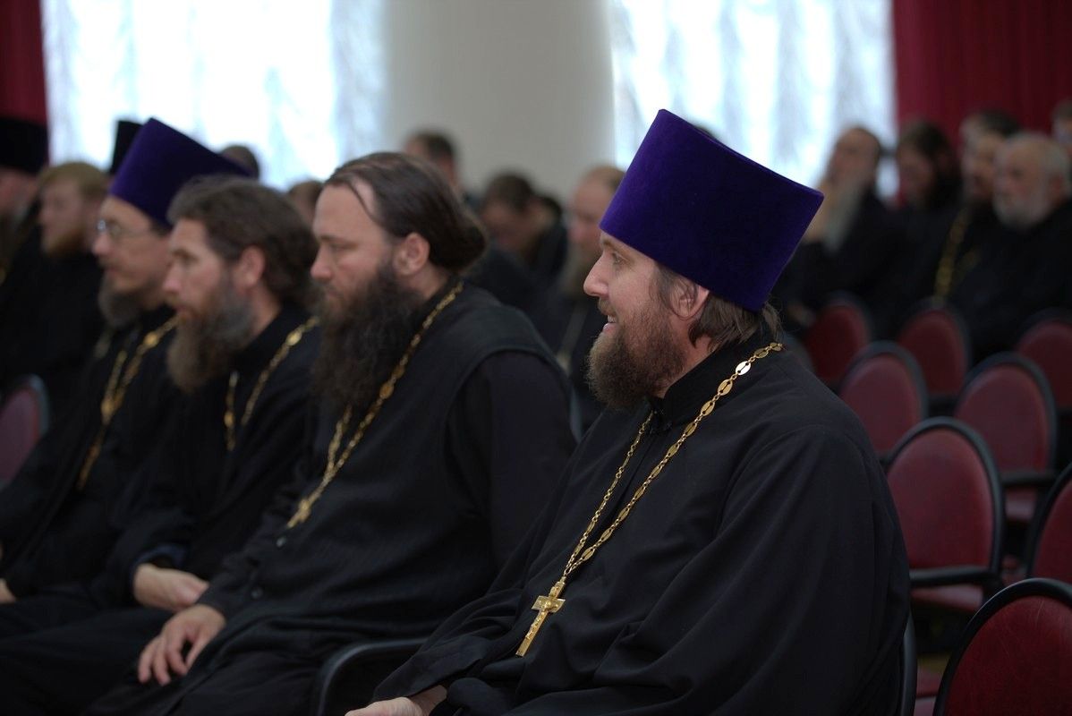 После совместного богослужения в соборе Благовещения Пресвятой Богородицы и крестного хода к Успенскому храму, священнослужители и представители приходов собрались в актовом зале Православного центра на епархиальное собрание.