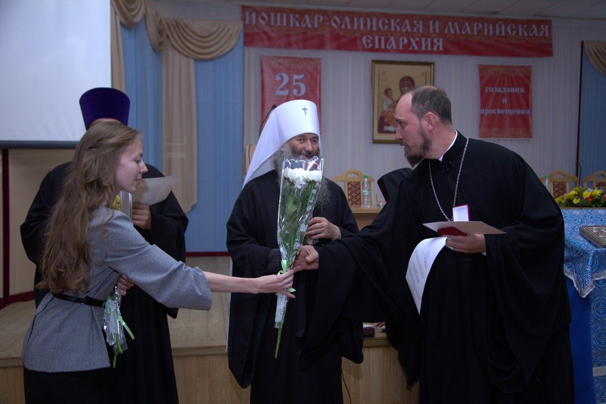 Владыка познакомил собравшихся со статистикой. На начало нового церковного года в Йошкар-Олинской епархии после образования Марийской митрополии и появлении Волжской епархии насчитывается 98 храмов, 2 монастыря и 33 часовни. В них служат 95 священников и 18 диаконов. С сентября 2017 по сентябрь 2018 года рукоположено 2 священника. По окончании Сретенской семинарии и магистратуры в Йошкар-Олинскую епархию для дальнейшего пастырского служения направлен иерей Андрей Иванов.