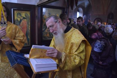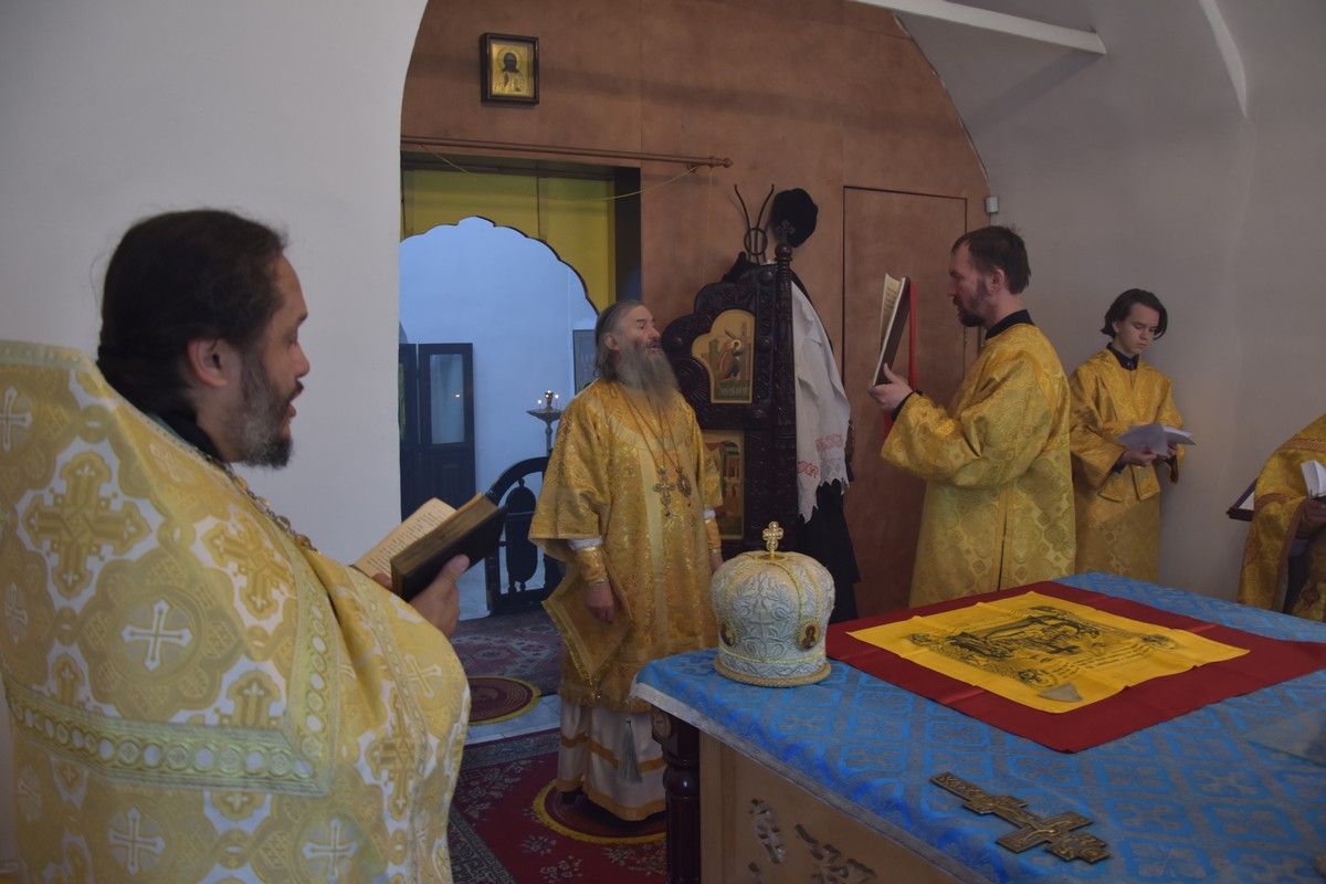 Богослужение началось торжественной встречей архиерея. За Литургией возносились особые молитвы о мире в Украине и единении Православной Церкви. После Божественной литургии прошел крестный ход с чтением Евангелия, кроплением святой водой и чтением молитвы ко Пресвятой Богородице. За богослужением и на крестном ходе помогали казаки.