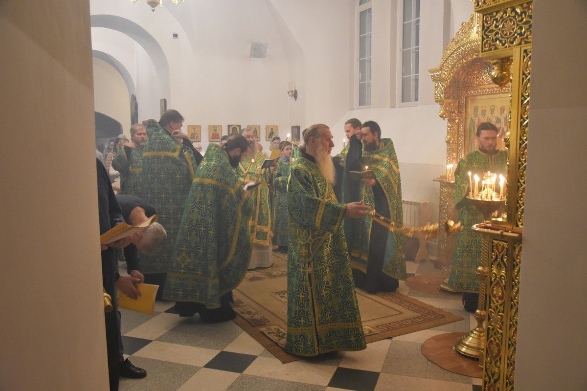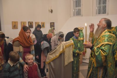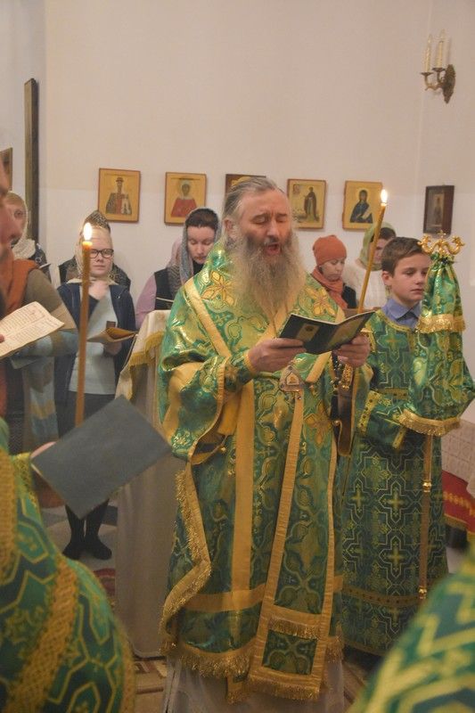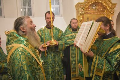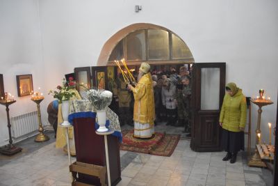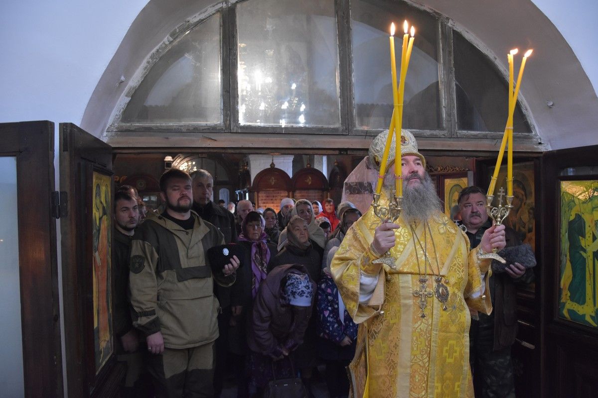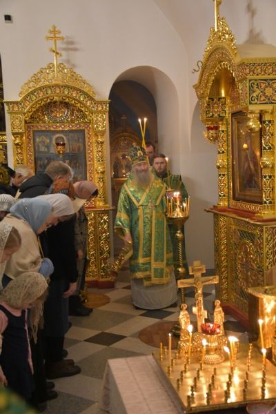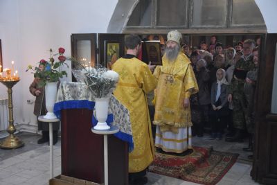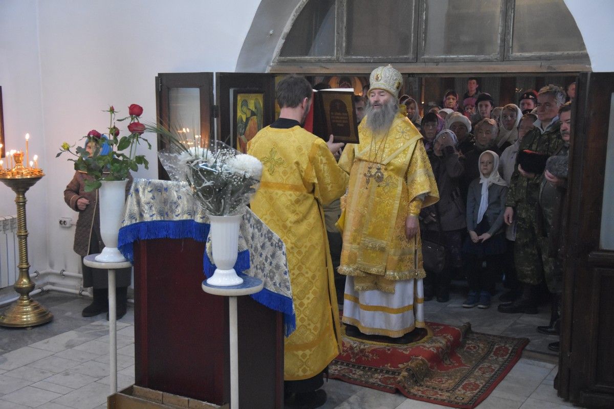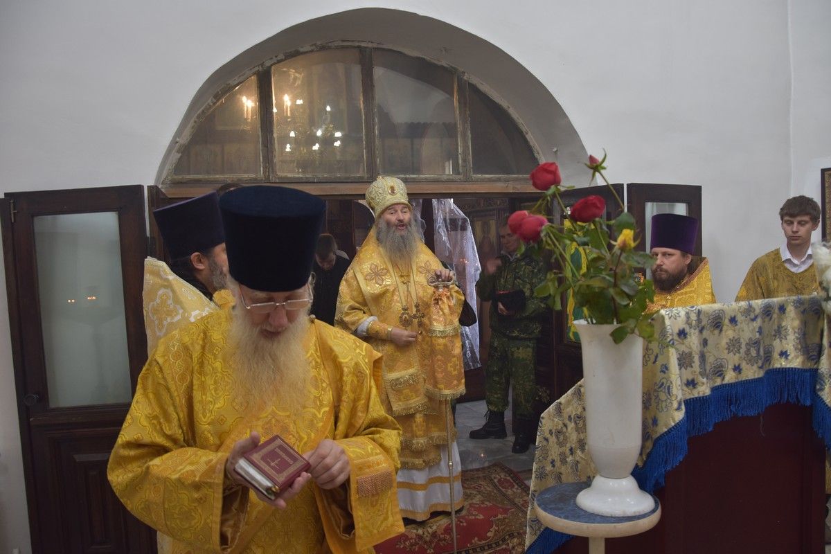 Владыке сослужили настоятель храма протоиерей Александр Бачурин, клирики храма иерей Константин Домрачев, иерей Виктор Умрихин, иерей Николай Бабич, диакон Димитрий Лукьянов и клирик храма Рождества Пресвятой Богородицы с. Семеновка протодиакон Михаил Козловский.