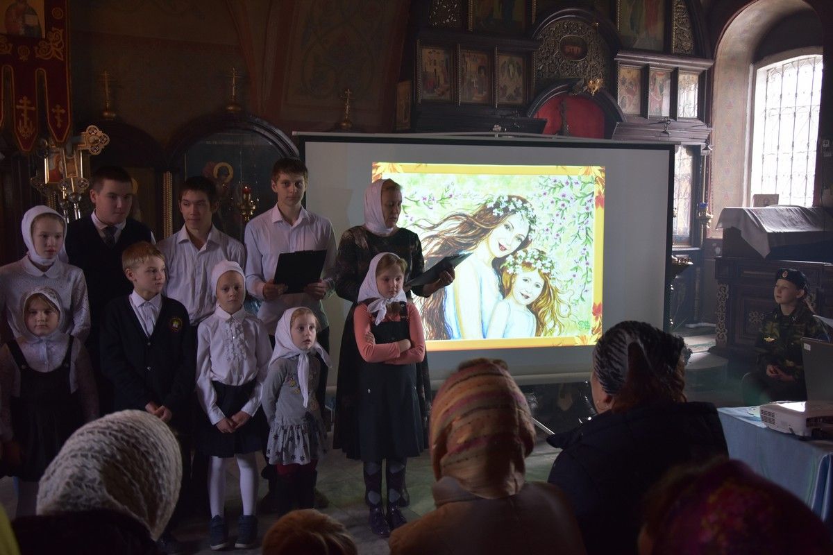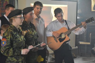 По завершении богослужения учащиеся воскресной школы и военно-патриотического клуба представили музыкальную программу в честь 225-летия каменного храма с. Кокшайск.