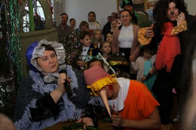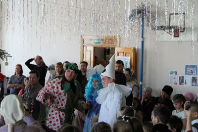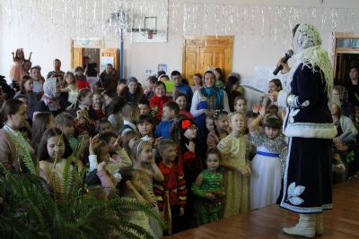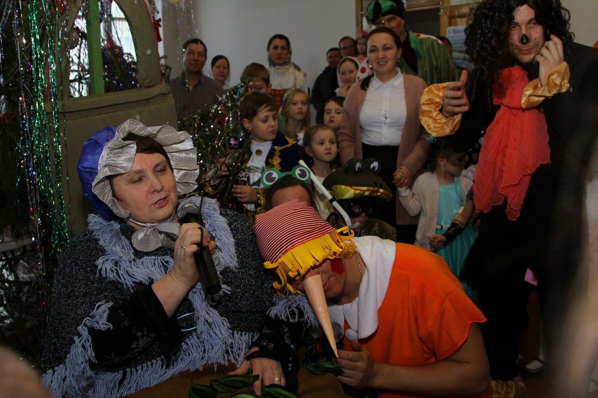 Главным событием праздника стала постановка сказки "Рождественские приключения Буратино и его друзей". Действие постановки разворачивалось таким образом, что каждый присутствующий окунувшись в мир доброй сказки вместе с главными героями Буратиной и Мальвиной чувствовал себя действующим лицом и играл немаловажную роль. Сказочные герои, которых играли в основном взрослые, веселили и разыгрывали детей, пели с детьми песни, играли и водили хороводы. Конечно же, не обошлось и без главных героев Деда Мороза и Снегурочки. Они провели много конкурсов и розыгрышей. А самых активных и смелых ждала сладкая награда из волшебного мешочка Мороза Ивановича.