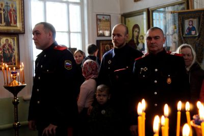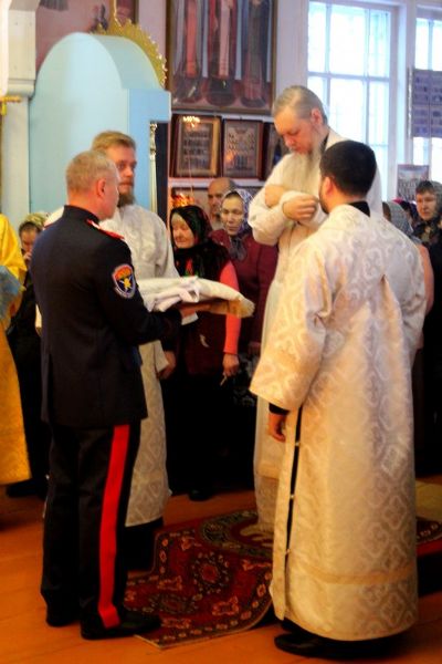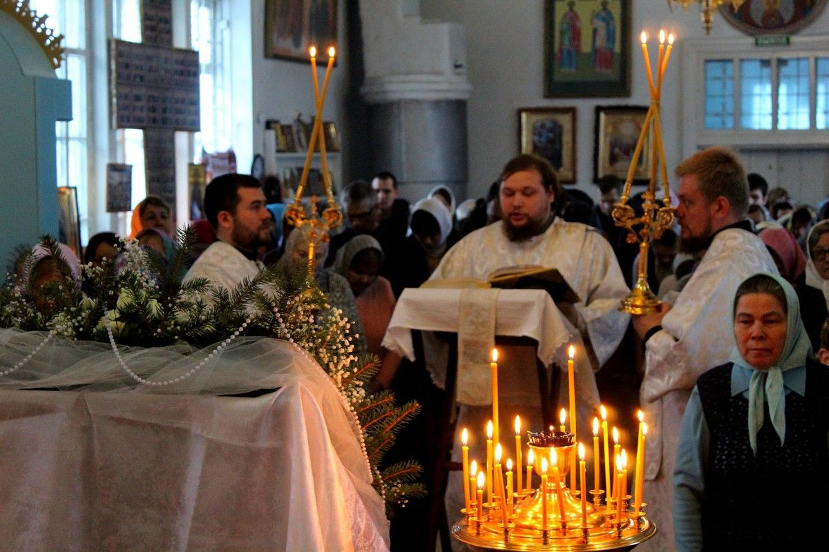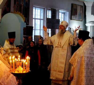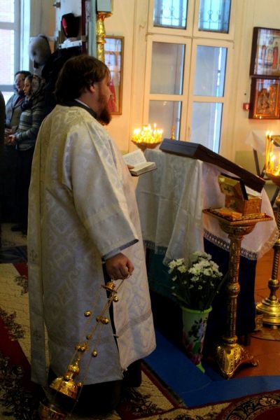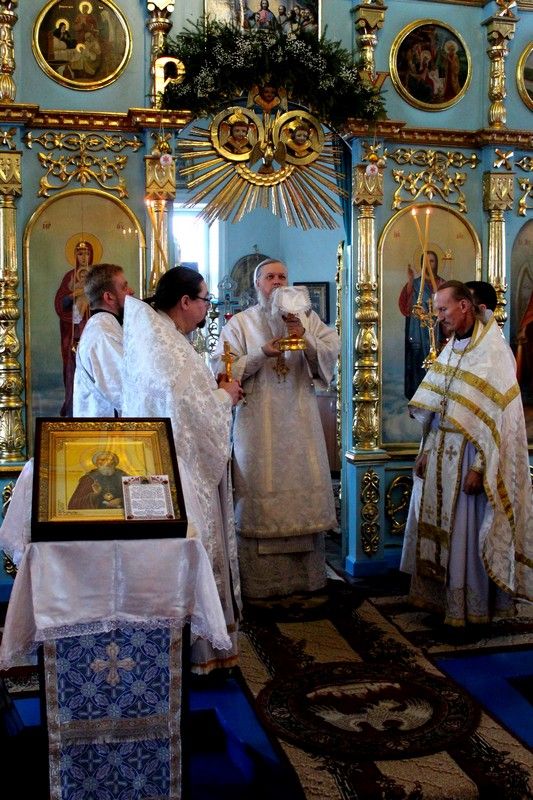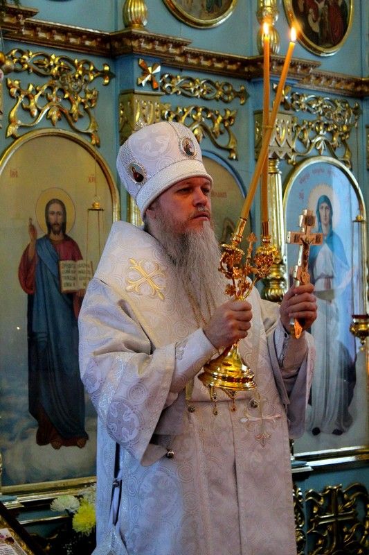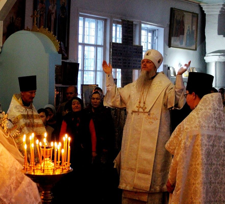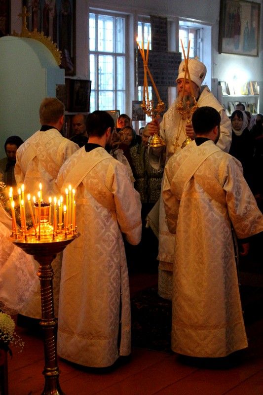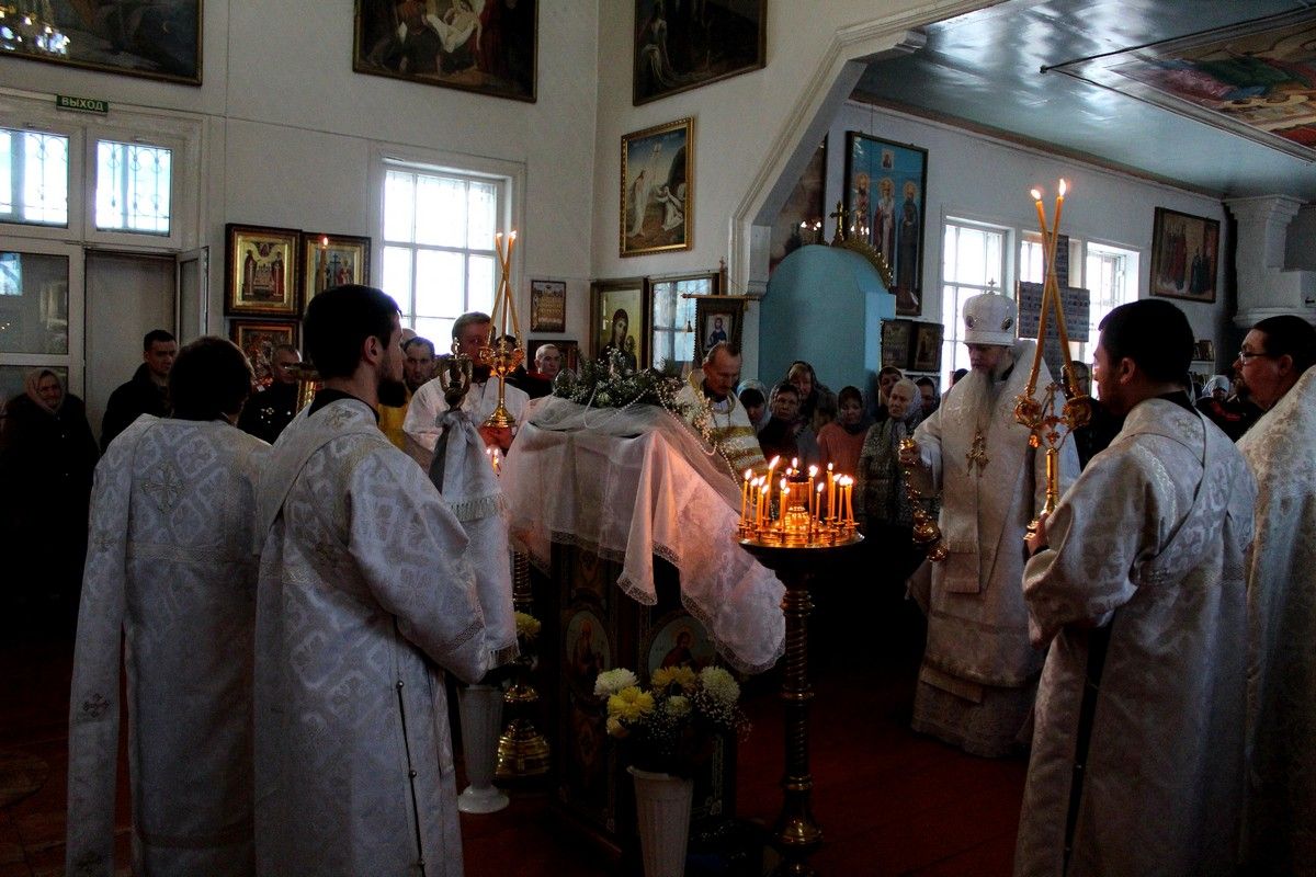 Его Преосвященству сослужили: настоятель храма Покрова Пресвятой Богородицы с. Эмеково протоиерей Евгений Усков, настоятель храма Пресвятой Троицы с. Помары иерей Сергий Петров, клирик Никольского кафедрального собора г. Волжска – диакон Иоанн Захаров.
