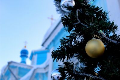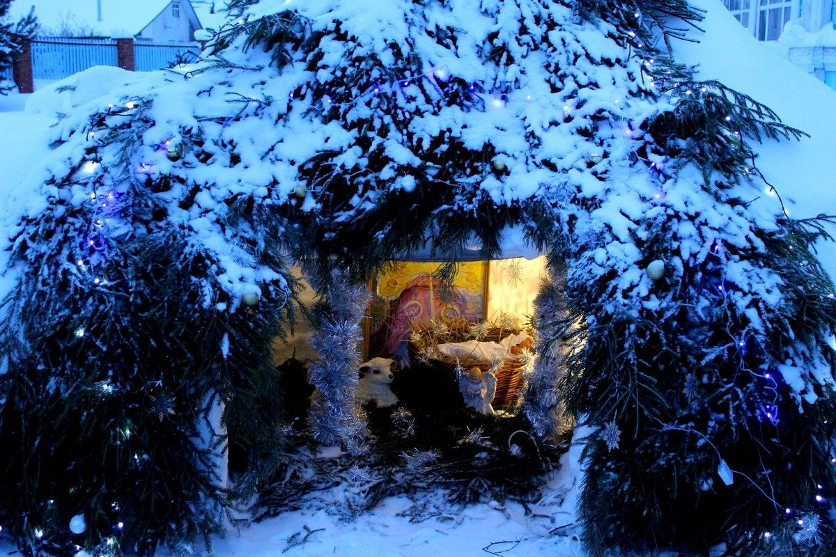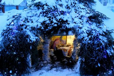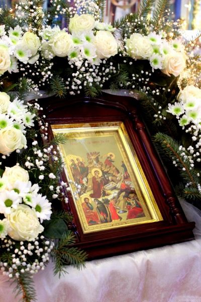 Завершая Божественную литургию, владыка вместе с сослужащим духовенством совершил славление у иконы Рождества Христова.