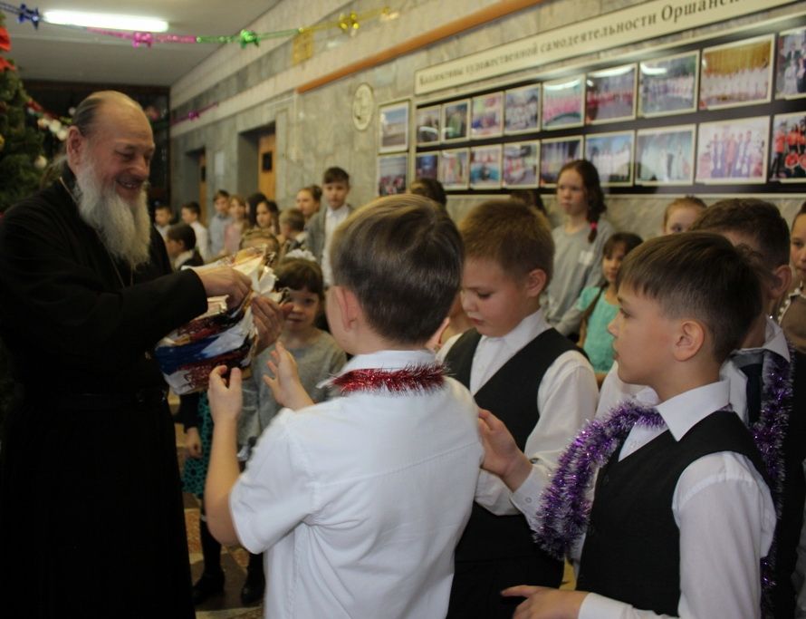 Сердечно поздравили собравшихся с Рождеством Христовым настоятели Предтеченского храма пос. Оршанка и храма Покрова Пресвятой Богородицы с. Упша протоиереи Димитрий Вылекжанин и Михаил Нехорошков. Из их рук дети получили подарки – познавательные книги.