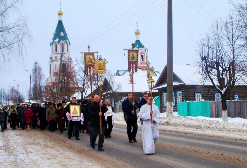 После Всенощного бдения всю ночь в церкви шло чтение акафистов всеми желающими и молебное пение. А наутро, в воскресенье, после Божественной Литургии был молебен с акафистом святой мученице Татиане и Крестный ход с ее иконой по улицам Оршанки (снимок).