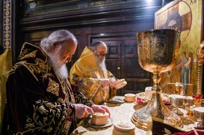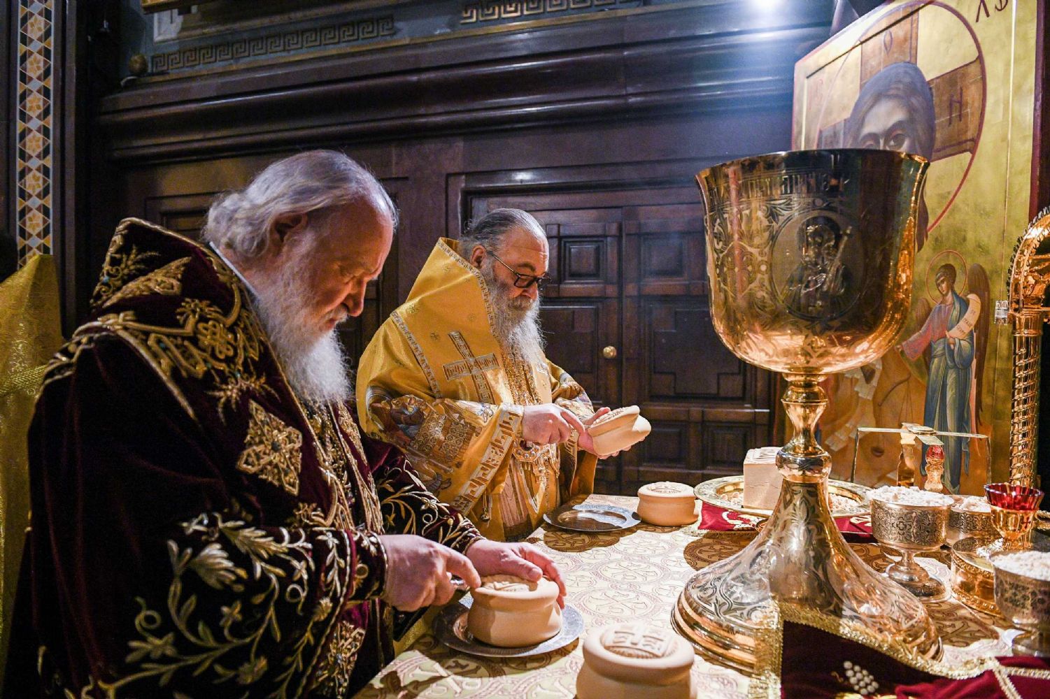 Богослужебные песнопения исполнили Патриарший хор Храма Христа Спасителя под руководством регента Ильи Борисовича Толкачева и братский хор Свято-Троицкой Сергиевой лавры под руководством регента архимандрита Глеба (Кожевникова).