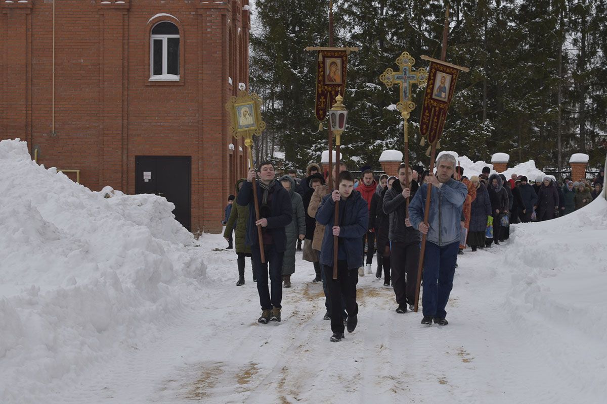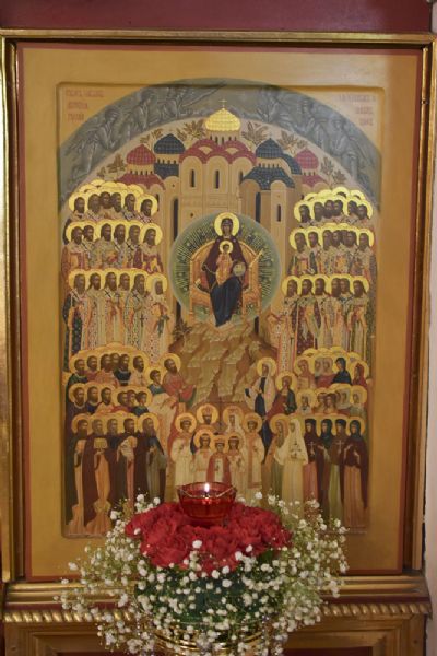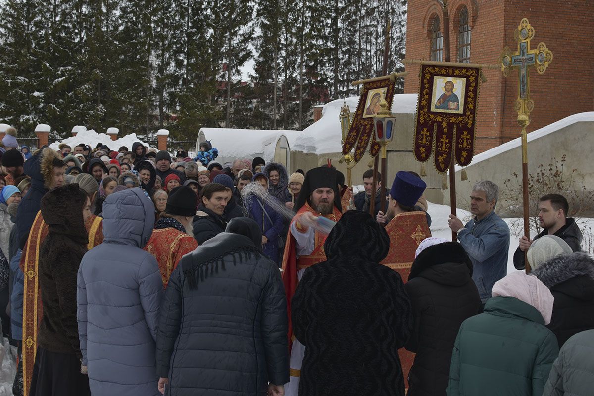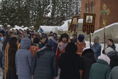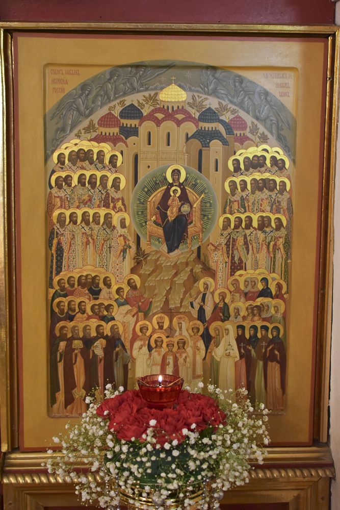 Богослужение началось торжественной встречей митрополита Иоанна. После Литургии прошел крестный ход вокруг храма с кроплением святой водой. Затем духовенство и миряне вознесли молитву к новомученикам и исповедникам Церкви Русской.