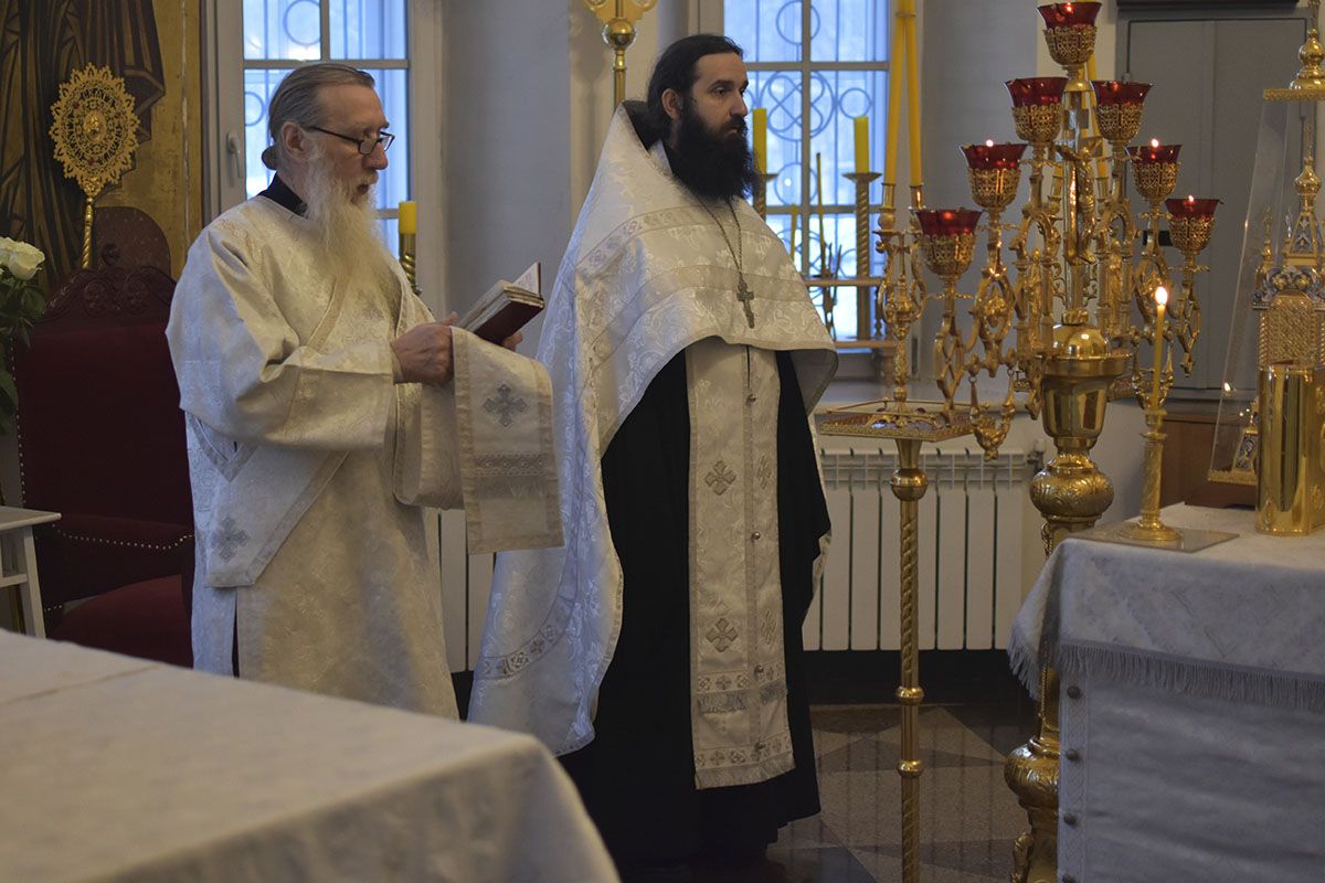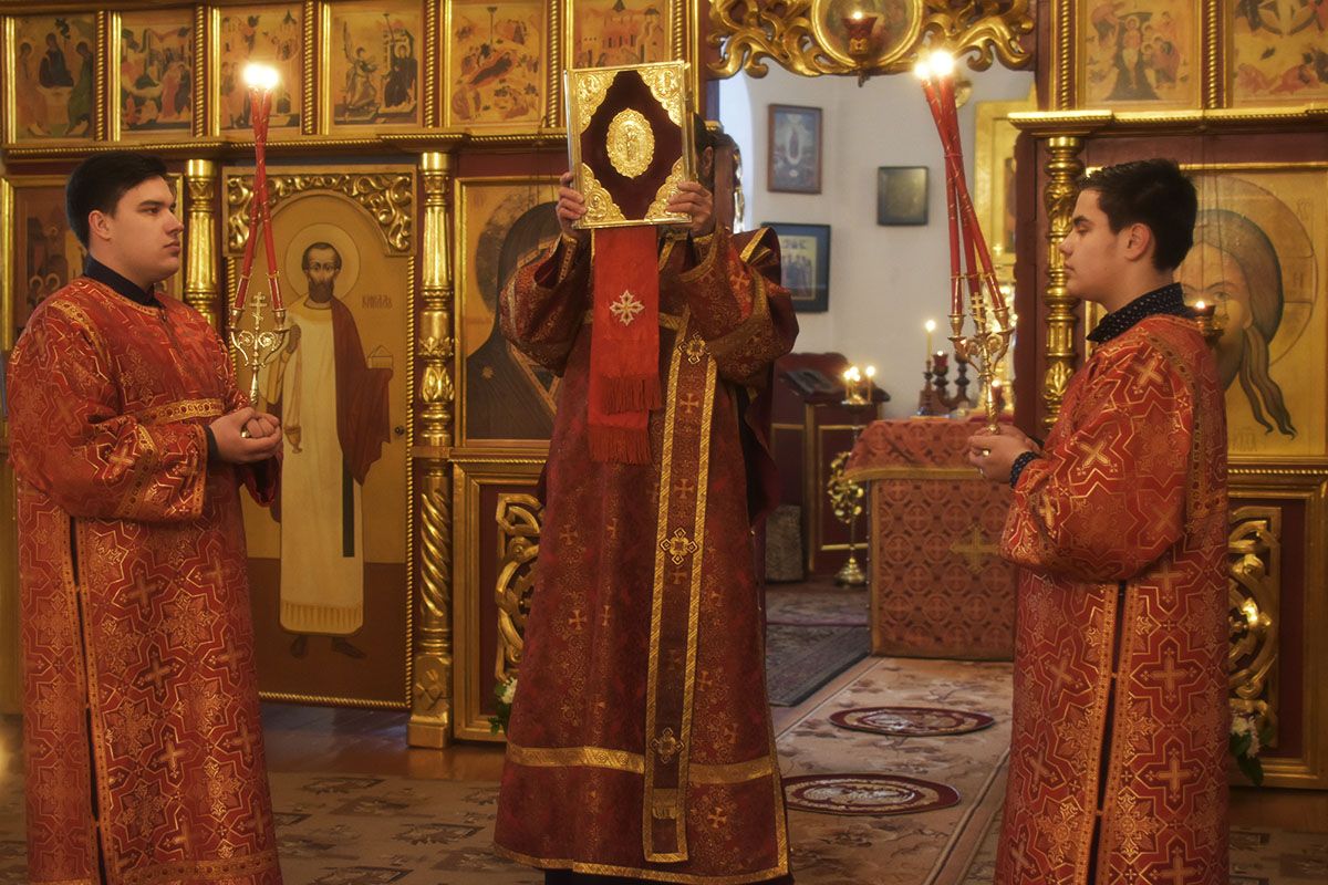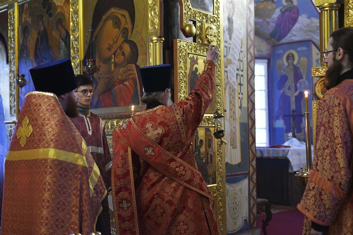 Владыке сослужили секретарь Йошкар-Олинского епархиального управления иеромонах Серафим (Пасанаев), настоятель храма протоиерей Алексий Михайлов, клирики храма иерей Алексий Добиков, диакон Игорь Кочуев и клирик храма Рождества Пресвятой Богородицы с. Семеновка протодиакон Михаил Козловский.