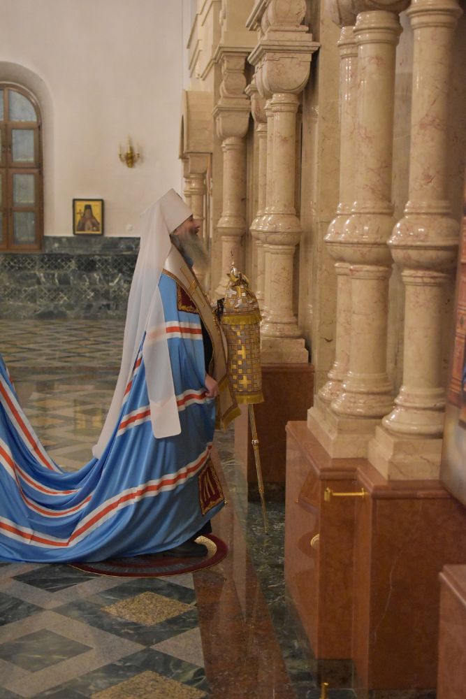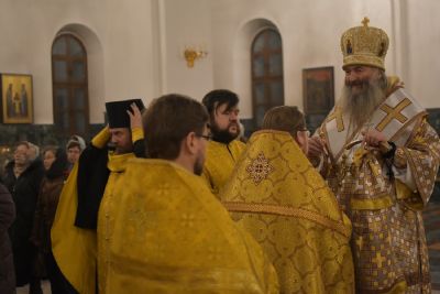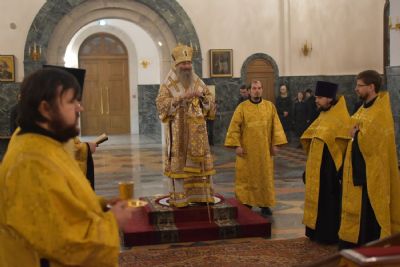 11 февраля, в канун памяти вселенских учителей и святителей Василия Великого, Григория Богослова и Иоанна Златоустого, митрополит Йошкар-Олинский и Марийский Иоанн возглавил Всенощное бдение в Благовещенском кафедральном соборе.