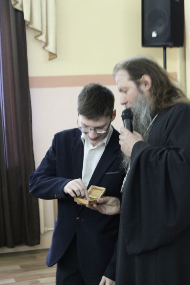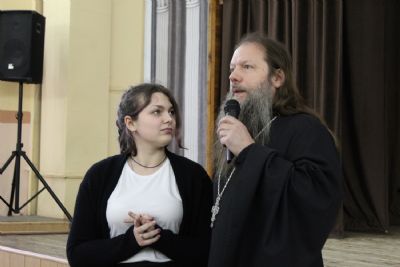 В завершение классного часа, протоиерей Артемий Владимиров прочитал молитву о благополучной, счастливой жизни каждого сидящего старшеклассника, пожелав в дальнейшем создания благочестивой и любящей семьи.