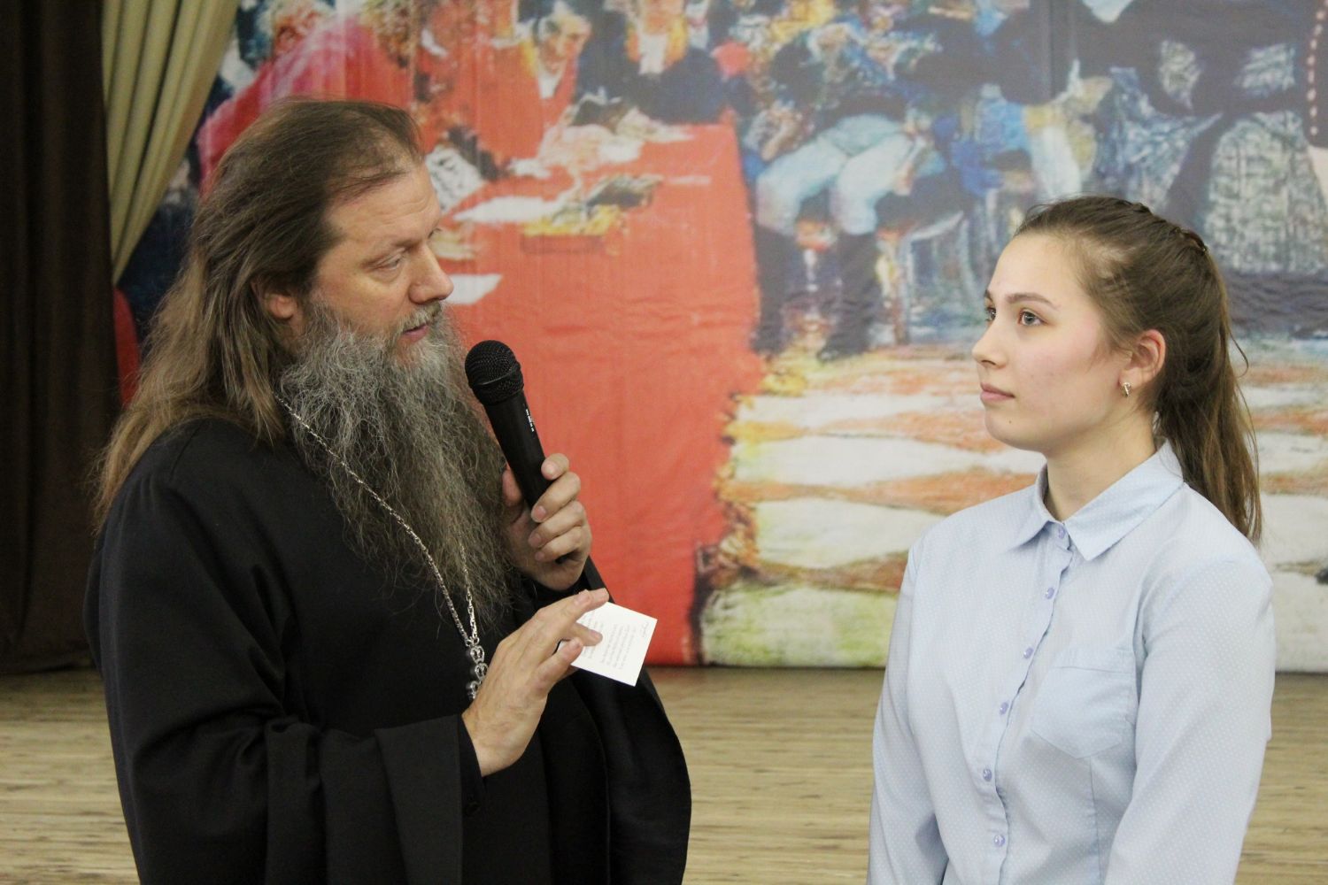 Классный час проводился в виде игры-викторины. За правильный ответ участники получали подарки от батюшки.