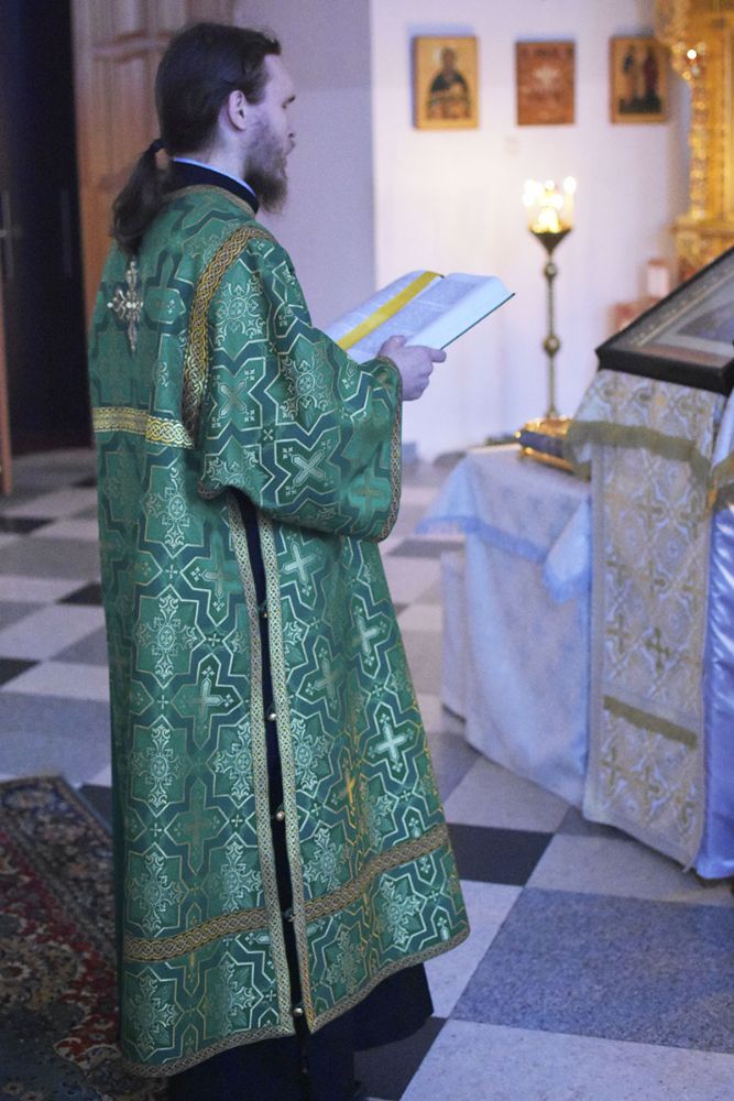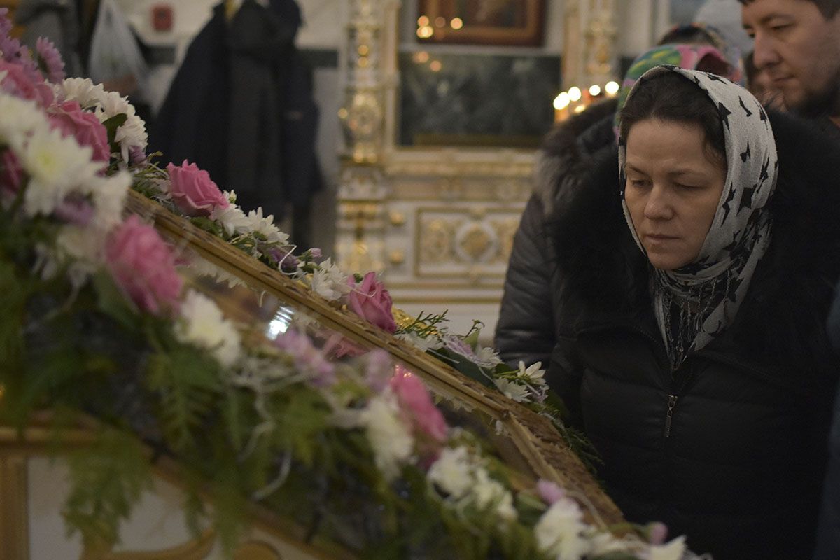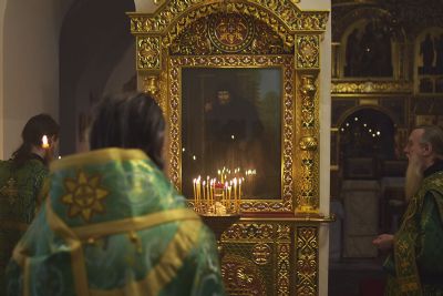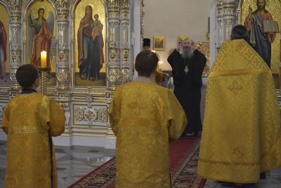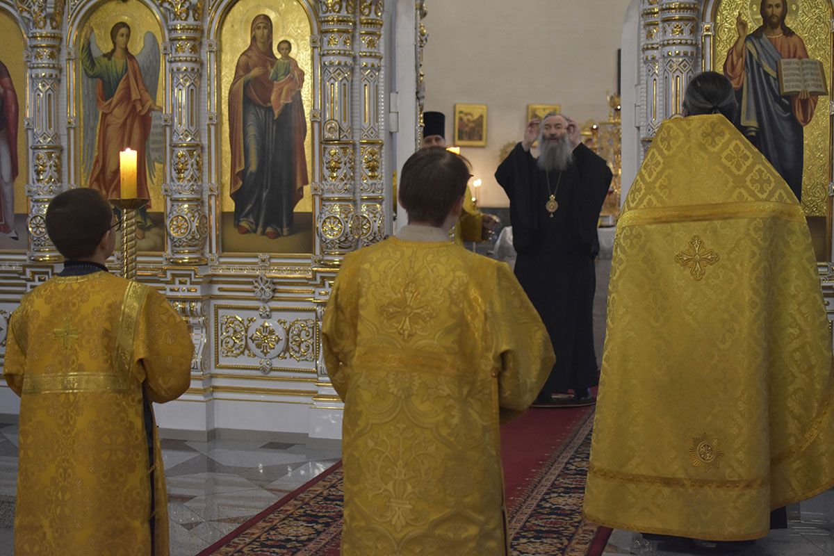 Вечерню с пением акафиста митрополит Иоанн возглавил в храме преподобного Серафима Саровского. Владыке сослужили настоятель храма протоиерей Александр Бачурин, протоиерей Василий Лихачев, клирики храма иереи Виктор Умрихин, Константин Домрачев, Николай Бабич, диакон Димитрий Лукьянов и клирик храма Рождества Пресвятой Богородицы с. Семеновка протодиакон Михаил Козловский. Песнопения исполнял хор храма под руководством регента Елены Умрихиной.