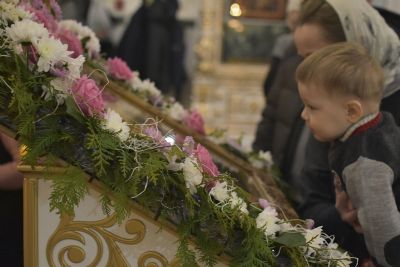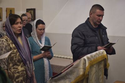 Песнопения исполнял хор Воскресенского собора под руководством регента Алисы Вылекжаниной.