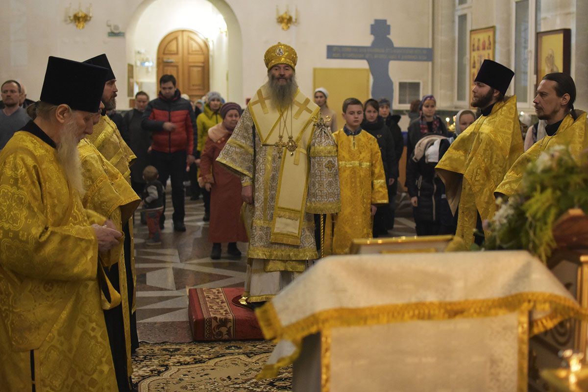 16 февраля накануне первой подготовительной недели к Великому посту — недели о мытаре и фаресее митрополит Иоанн возглавил Всенощное бдение в Воскресенском соборе г. Йошкар-Ола.