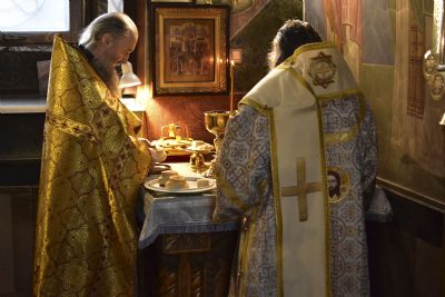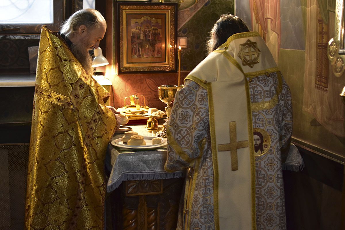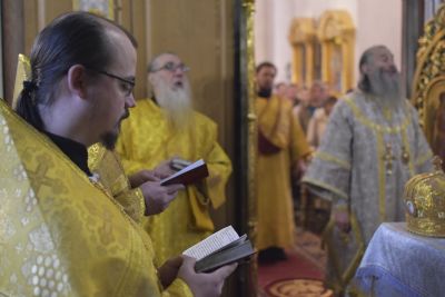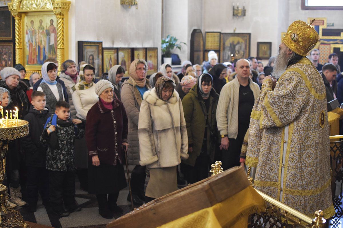 За Литургией возносились особые молитвы о умирении брани в Украине и о единении Православной Церкви. Читались отрывки из послания апостола Павла апостолу Тимофею (3 глава 2-го послания) о тяготах апостольского служения и из Евангелия от Луки (18 глава) притча о мытаре и фарисее.