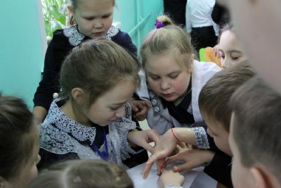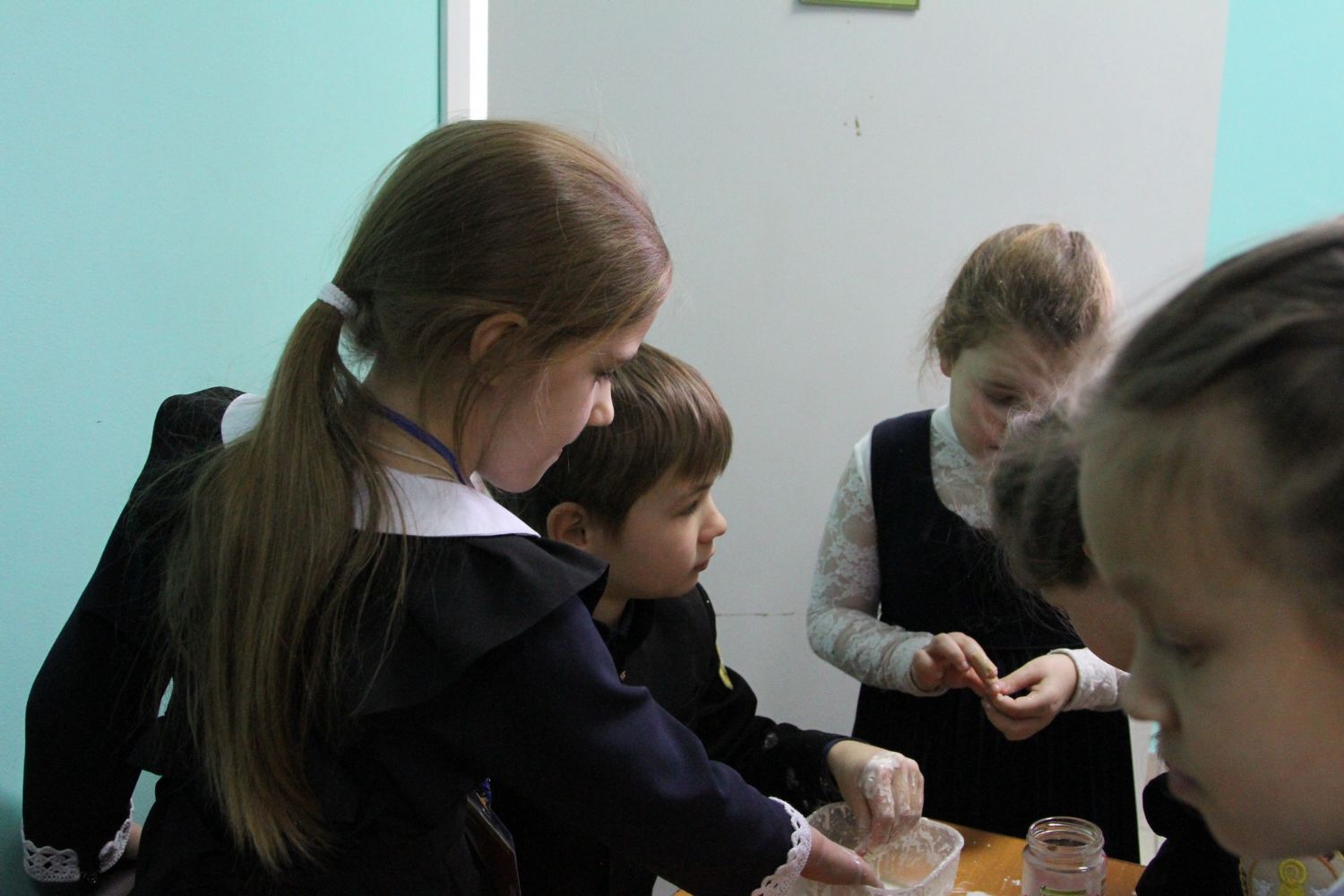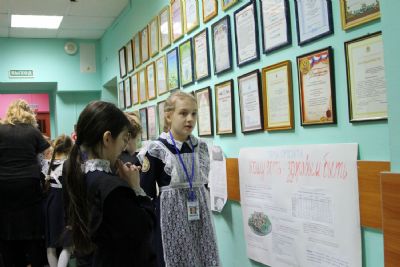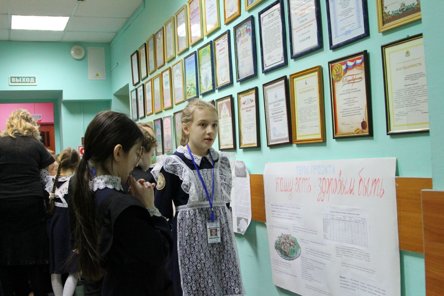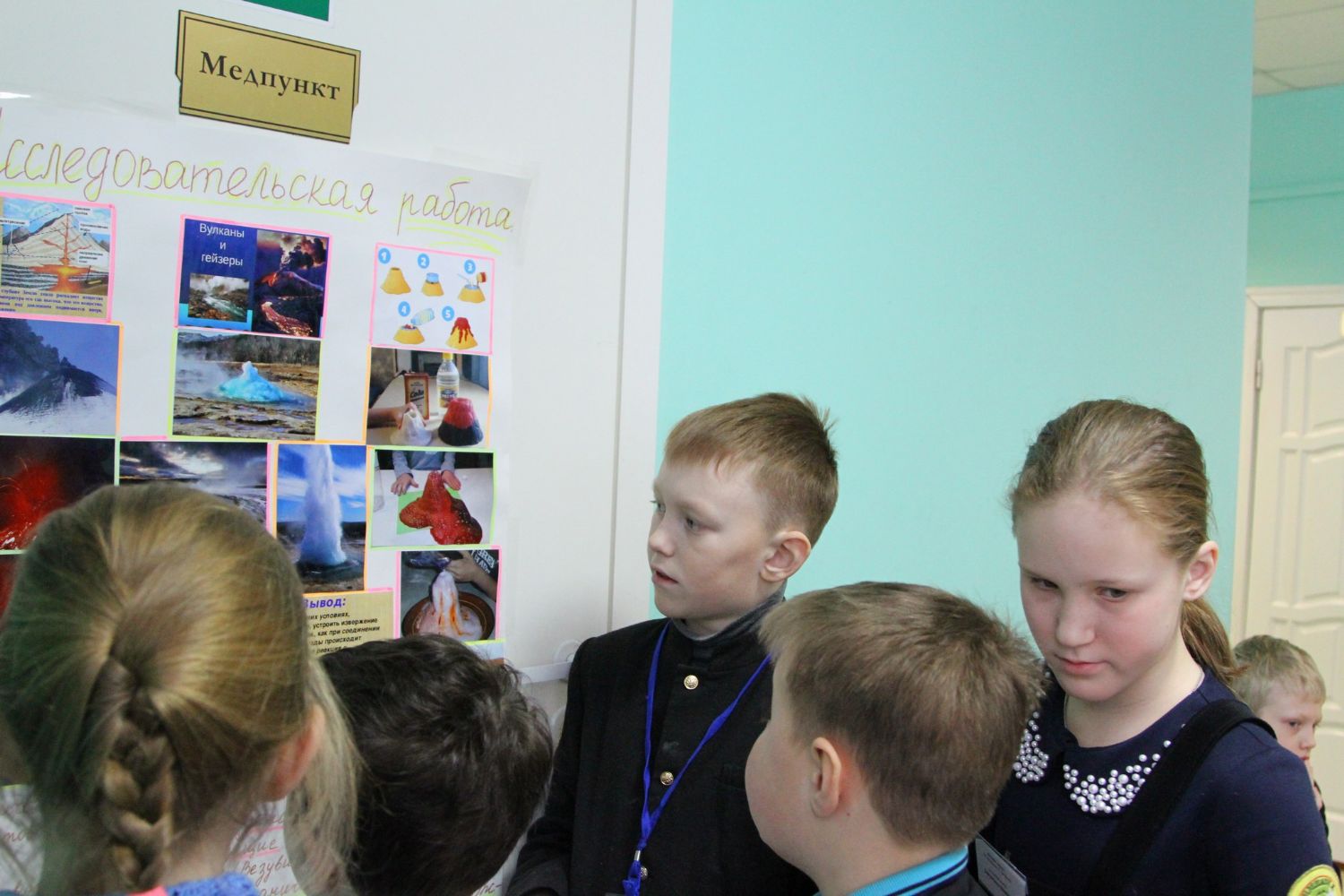Ребят из начальной школы ждала насыщенная, интересная и познавательная программа: экскурсия на интерактивную научную выставку роботов, беседы о научных открытиях, учёных, Нобелевских лауреатах, конкурсы, викторины и самое главное – защита проектно-исследовательских работ, которые готовились заранее вместе с родителями.