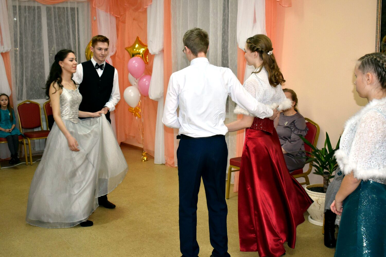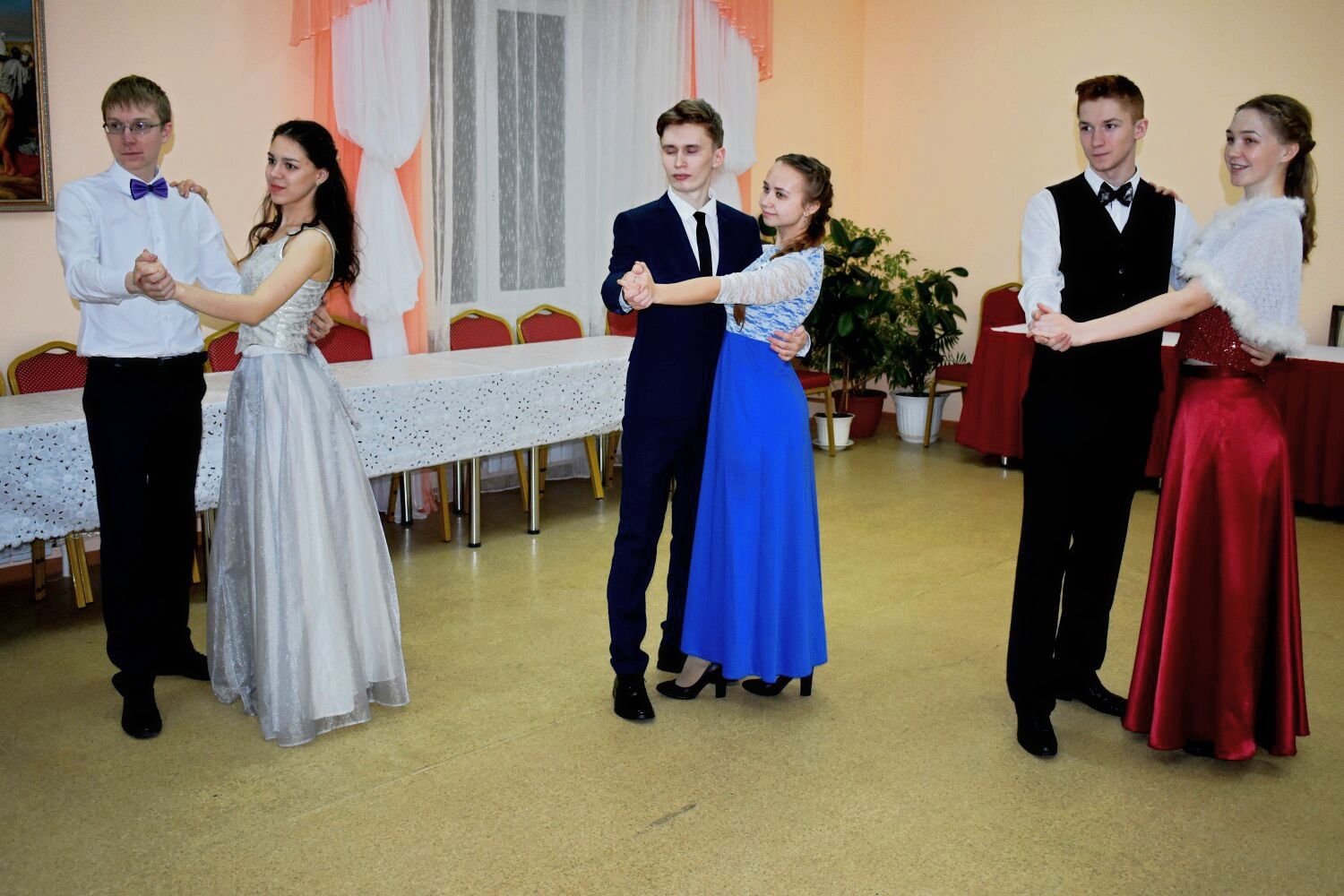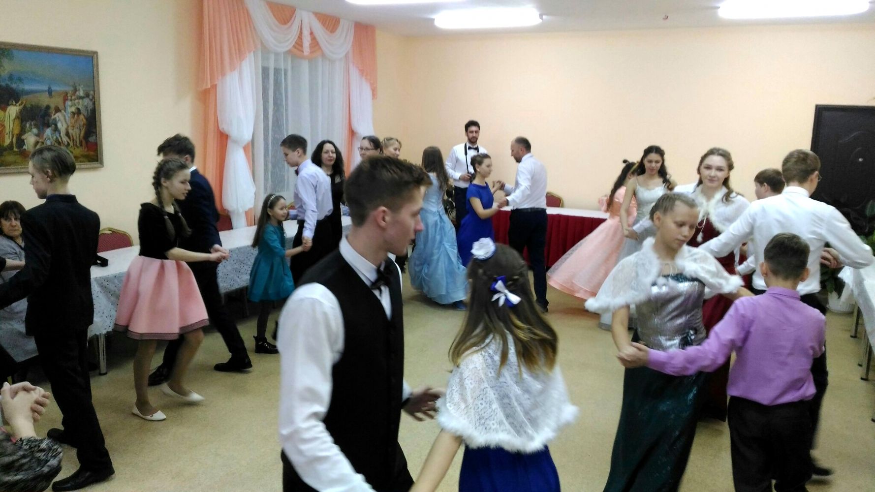 Музыка играла долго, зал заполнялся звуками, задающими темп текущего танца. А пары сливались в едином потоке вращающихся фигур Испанского вальса, жизнерадостной Московской кадрили, энергичного литовского танца Клумпакоис, а также Польке-Тройке, КД Дженни в базарный день и др. Между танцевальными отделениями бала участники играли в бальные игры (Калейдоскоп, Ручеек, Безопасный угол). КД Золушка, Падеграс, Вальс Паганини составили своеобразную изюминку бала, давая участникам "отдохнуть" в их объятиях.