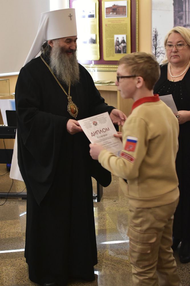 После вступительного слова митрополита Йошкар-Олинского и Марийского Иоанна прошло награждение победителей Республиканского конкурса сочинений-эссе «Ангел Русской Церкви: Святейший Патриарх Алексий II" в средней (13-18 лет) и младшей (7-12 лет) возрастных категориях. В своих сочинениях учащиеся рассуждали о жизни и подвиге Святейшего Патриарха, его роли в жизни нашей страны, а также над его изречениями. Жюри конкурса обратило особое внимание на несколько работ, в которых присутствуют особо интересные мысли и примеры из жизни и истории государства.