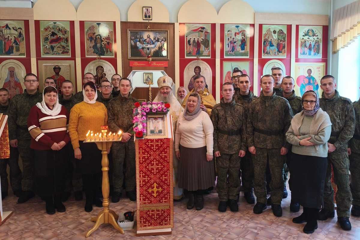 Его Преосвященству сослужили клирики собора: протоиерей Валерий Федоров, иерей Александр Усков, иерей Матфей Сапаев, иерей Виталий Ульянов, диакон Иоанн Захаров, диакон Андрей Легостаев.