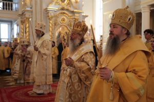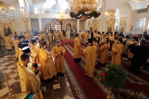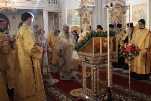 Архипастырям сослужили благочинные Саранской епархии, настоятели и духовенство храмов г. Саранска, гости в священном сане из других епархий.