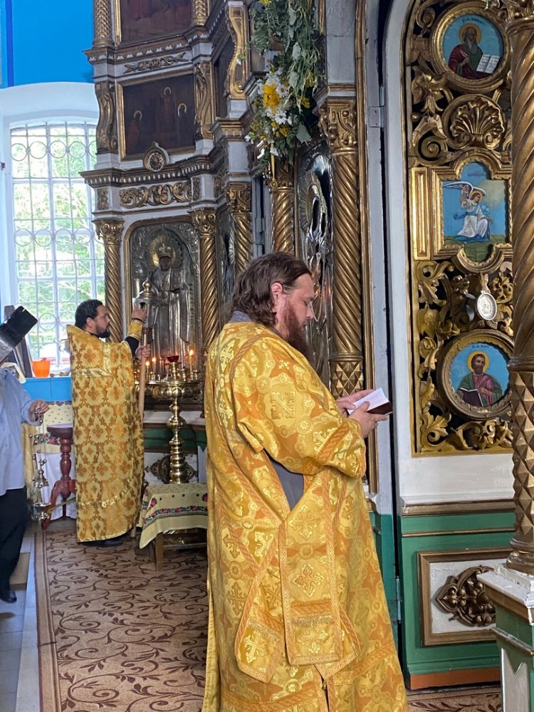 Божественную литургию возглавил настоятель храма иерей Алексий Семенов. Ему сослужили настоятель Преображенского храма с. Кожваши протоиерей Николай Соколов, настоятель Свято-Духовского храма с. Усола иерей Александр Малинов, настоятель храма Владимирской иконы Божией Матери с. Владимирское иерей Алексий Васюткин, настоятель храма Рождества Христова с. Еласы иерей Александр Сиситкин и клирик Никольского кафедрального собора г. Волжска диакон Иоанн Захаров.
