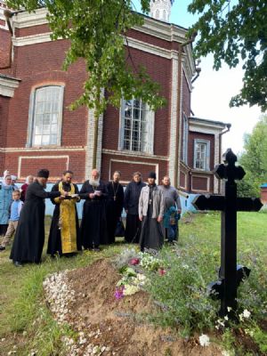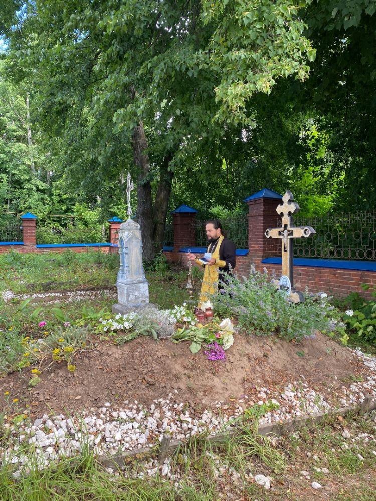 На могиле бывшего настоятеля протоиерея Иоанна Захарова, похороненного за алтарем храма, священство совершило заупокойную литию.