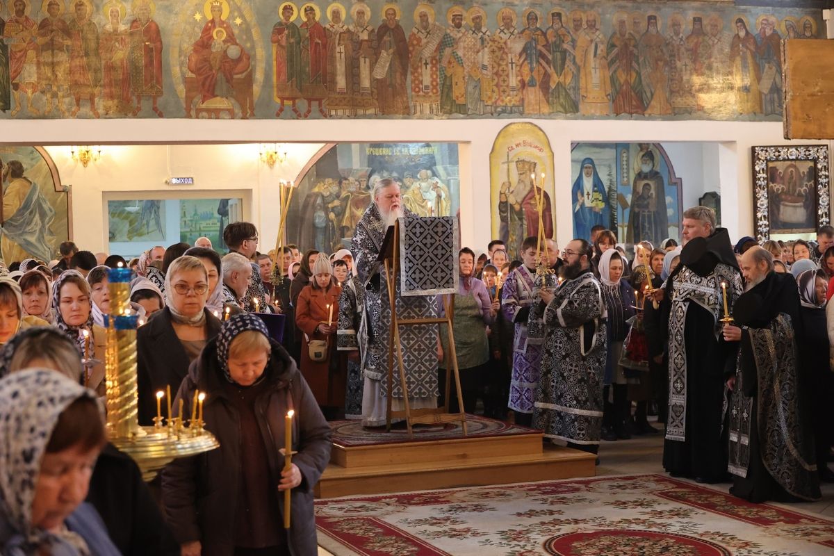 Его Преосвященству сослужили клирики кафедрального собора, песнопения исполнял архиерейский хор под управлением Любови Михеевой.
