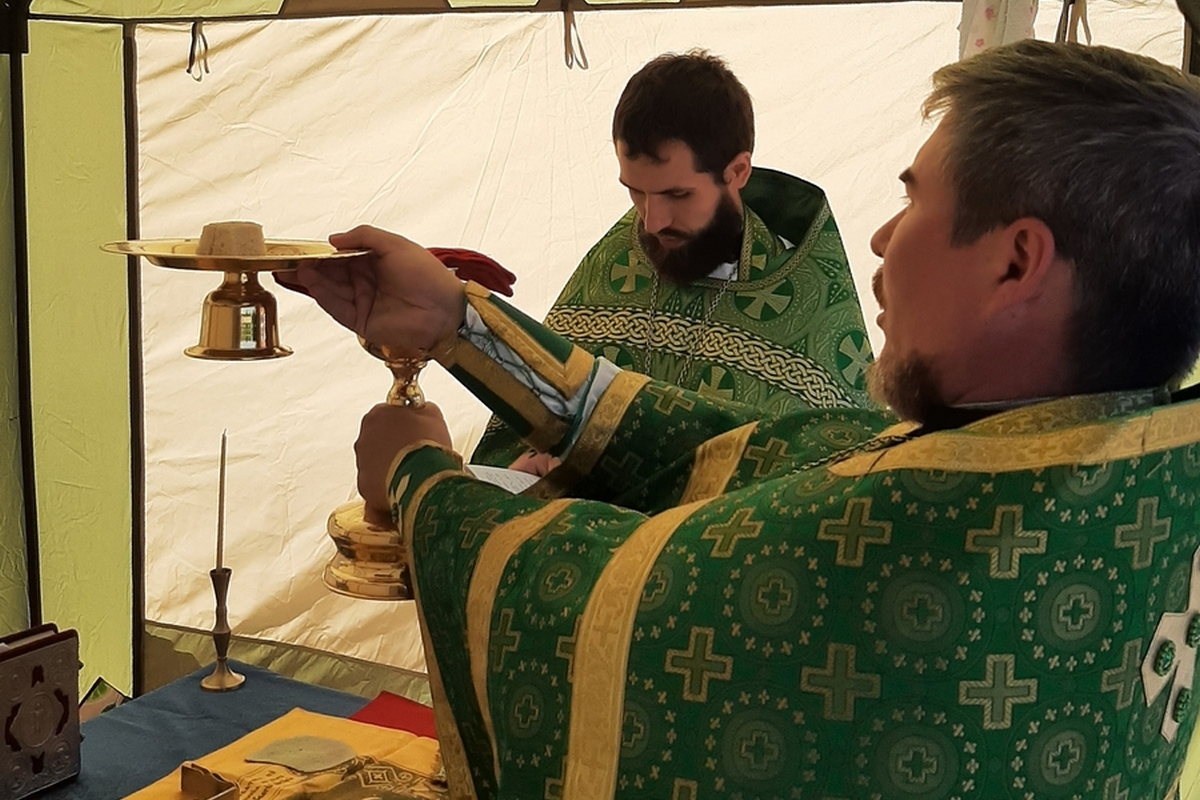 25 июня в деревне Среднее Азяково Медведевского района в палаточном храме была совершена Божественная литургия на марийском языке.