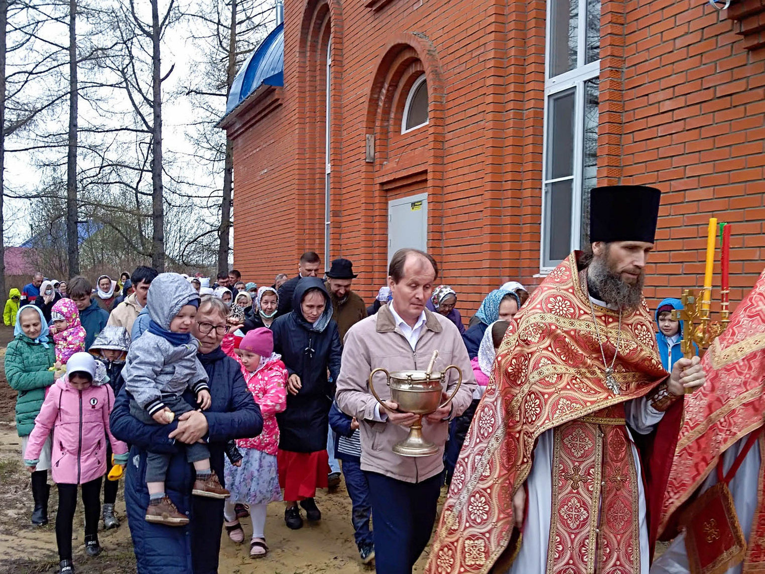 3 мая в строящемся в поселке Краснооктябрьский храме в честь иконы Пресвятой Богородицы «Споручница грешных» состоялась первая Божественная литургия.