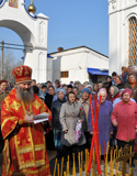 17 апреля, в пятницу Светлой седмицы, праздник иконы Божией Матери «Живоносный Источник», Его Высокопреосвященство совершил Божественную литургию в храме в честь иконы Божией Матери «Всех Скорбящих Радость» г. Волжска.