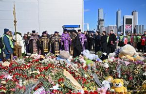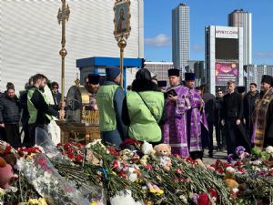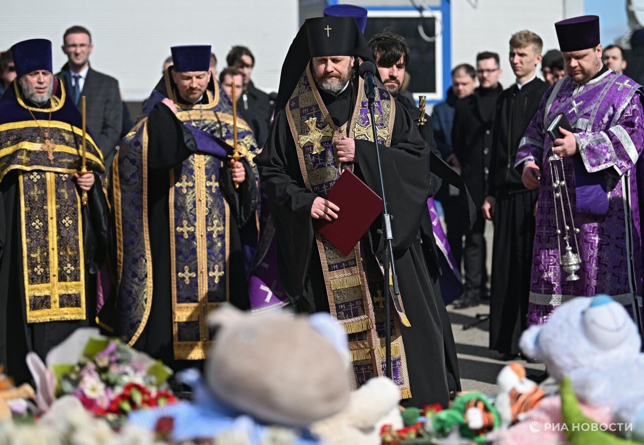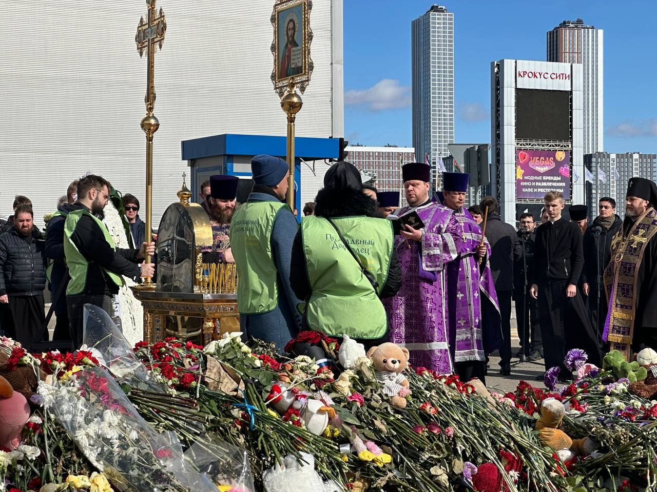 На 9-й день трагедии у здания «Крокус Сити Холла» совершена панихида 1232